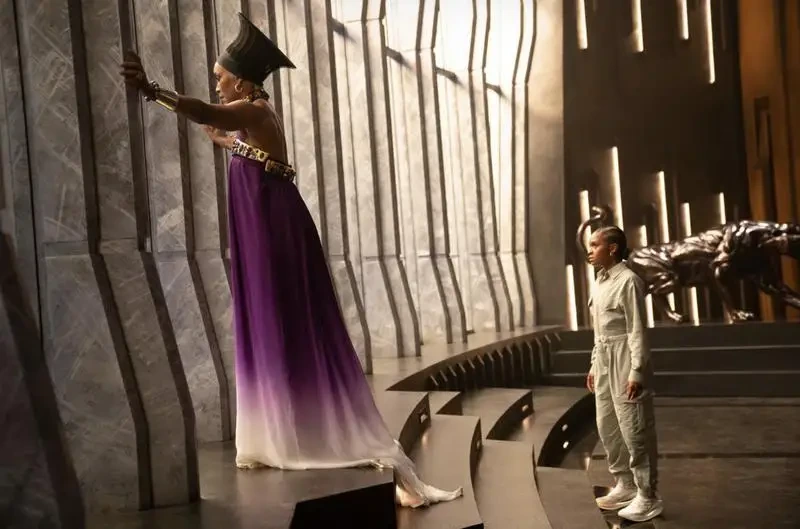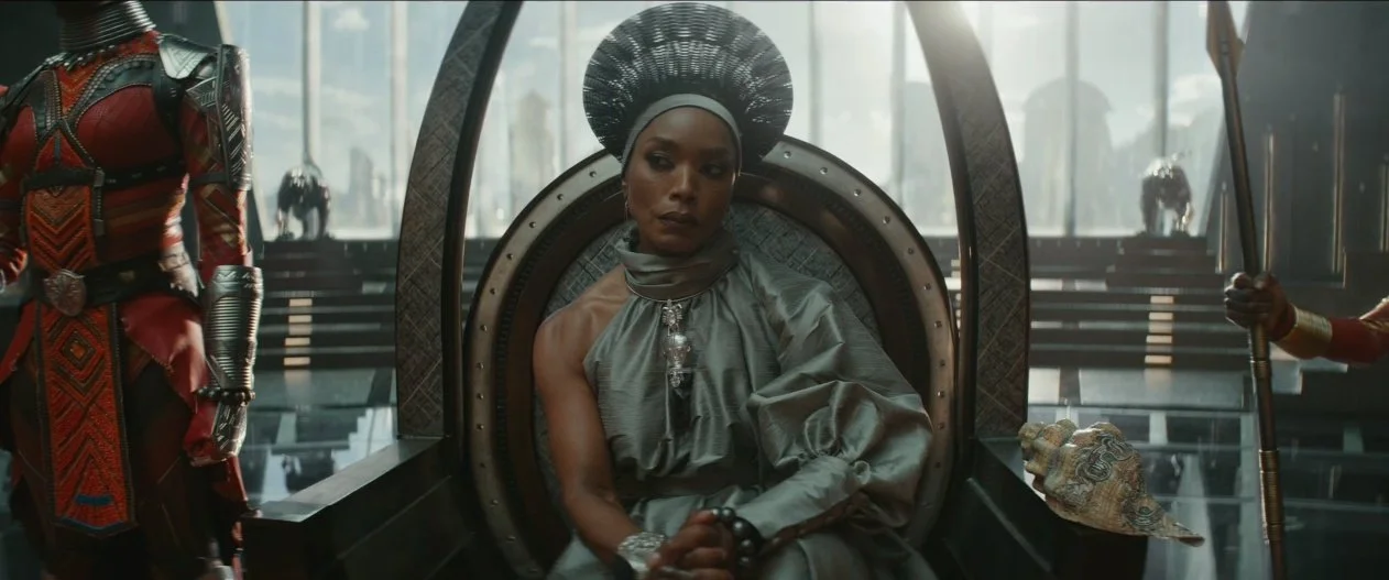 전통이 원래 이런 거니까 우리의 일도 어떠한 순서/규율을 따라야 한다고 말한 여자들은 결국 슈리의 ‘기술’ 앞에 그의 능력을 인정하고 복종하게 된다. 퀸 라몬다가 AI 그리오를 호명하고 오코예가 미드나잇 엔젤 수트를 입고 싸웠듯이. 그리고 때로는, 슬프지만, 후세대 여자들에게 권력을 성공적으로 이양해 주고 그들의 지위를 보장해주기 위해 (영화적으로) 제거된다. 퀸 라몬다의 죽음은 기존에 ‘아버지의 죽음을 직접 목도함’으로써 성장한 수많은 남성 영웅 - 트찰라 포함 -의 법칙을 아주 간단하게 반전시킨 장치다.
