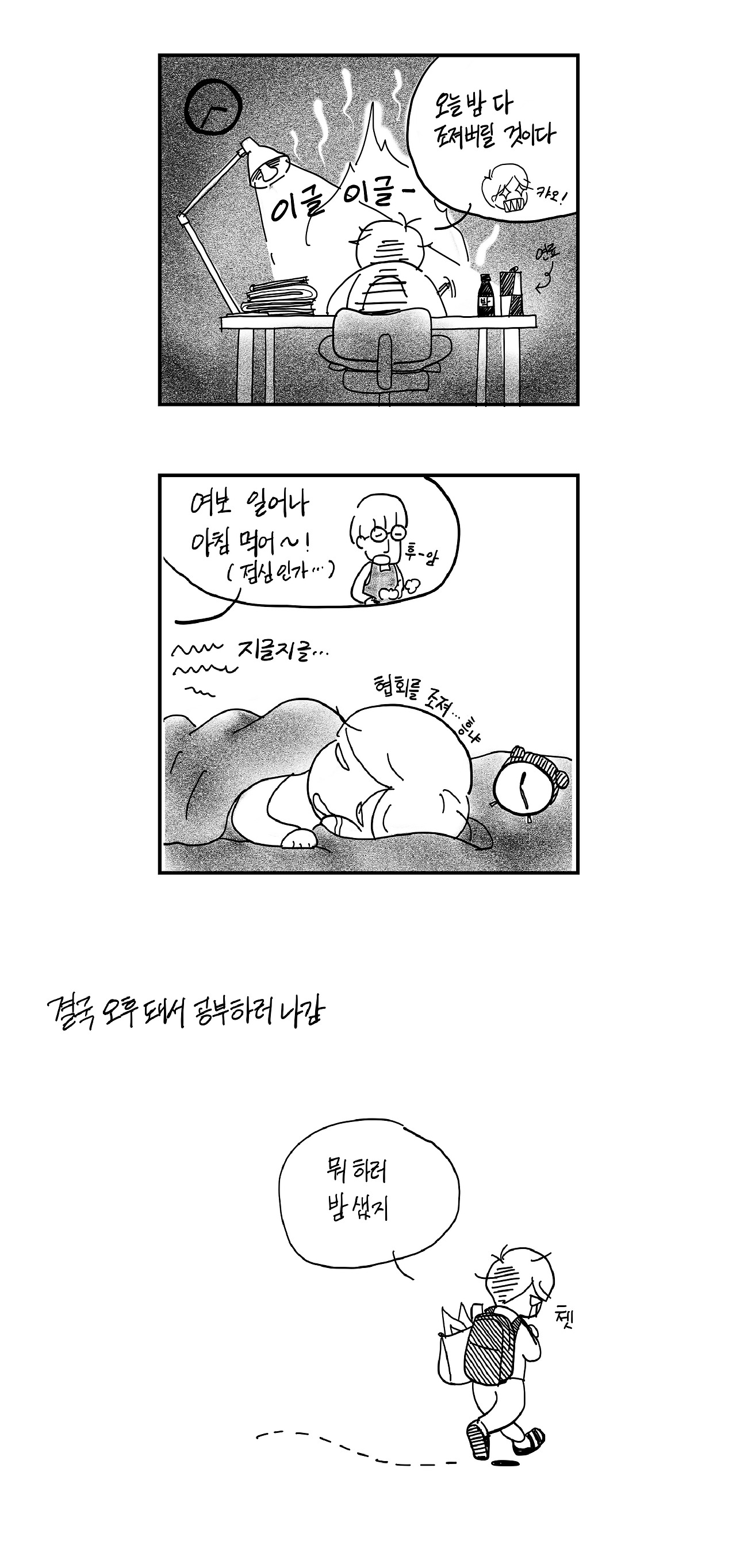 차라리 점수가 모두 좋아서 잔소리에 일관성이라도 있었으면 적어도 공부 방법론을 충실하게 참고할 수 있는 가이드 역할이라도 했을 것이다. (물론 읽는 사람들은 괴롭겠지만 말이다.) 나는 내가 지금 위치한 곳이 우매함의 봉우리라는 걸 자각하고 있었다. 오랜 기간 동안 유의미한 시도와 실패를 겪어나간 끝에 합격한 장수생이 나보다 몇 배는 훌륭한 글을 쓸 수 있다는 사실도 인정하고 있었다. 그럼에도 불구하고 마치 이 기회를 기다렸다는 듯 남들에게 활자로 갑질하려 했던 것은 아닐까 하는 생각이 들었다. 얕은 깊이로 찰박이는 문장들은 가만히 내 얼굴을 비추고 있었다.