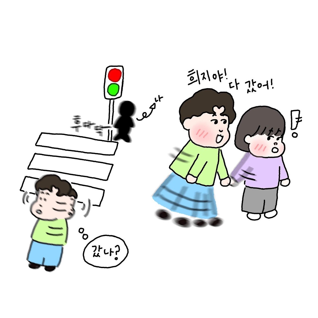 횡단보도를 먼저 후다닥 건넜다