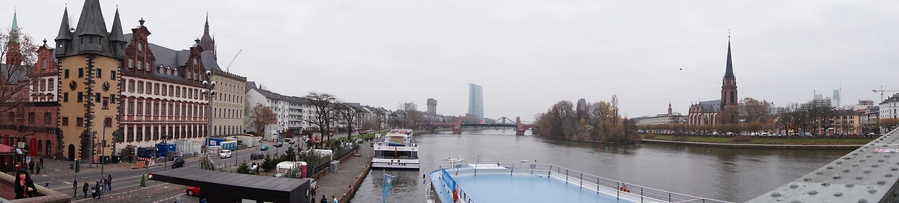 40분 남짓의 자유시간이 주어졌고, 너나 할 것 없이 흩어져버렸다. 이모와 나는 마인 강을 보러 갔다. 운하처럼 수송선이 지나다녔고, 큰 도시라고 하기에는 무척 고요했다. 뢰머 광장 반대편 강 건너에는 개신교회가 자리하고 있었고, 뢰머 광장 쪽에는 프랑크푸르트 대성당이 위치해 있었다. 교회 건물들과 시청사를 제외한 나머지 건물들은 다 전쟁통에 폭격을 맞았다고 했었는데... 아무리 머리로 전쟁 이전의 모습을 상상하고 그려보아도 잘 되지가 않았다. 아쉽기는 했지만... 역시 이 곳은 살기 좋은 도시라는 결론을 짓고 마무리하기로...