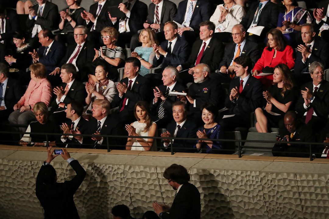 전 세계 가장 강한 강대국 20개국의 정상들이 모였던 자리이니 만큼, 빡빡한 일정 속에서 회담들이 이어지다 보니 공연을 보러 온 정상들 중 몇몇은 깜빡 잠이 들기도 해 공연 관람 태도가 좋지 않았다고 언론의 뭇매를 맞기도 했습니다만... 그래도 이렇게 세계 정상들이 모인 자리와 걸맞은 세계 평화를 기원하는 베토벤의 합창 교향곡이 울려 퍼진 것도 나름대로의 의미가 있지 않았을까 싶습니다.