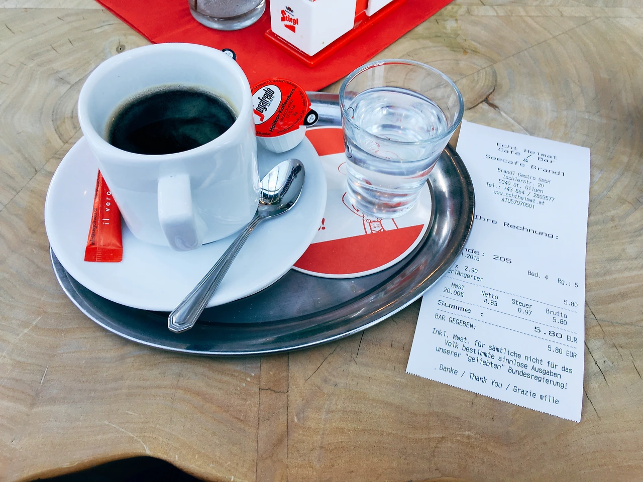 해가 산등성이 너머로 넘어가자 쌀쌀해졌다. 게다가 돌아다니다가 다리가 아파오기 시작했고... 그래서 이모와 커피를 한 잔 마시기로 했다. 펍? 바? 같은 곳이었는데 들어가 물으니 커피도 판다고 하기에 냉큼 자리를 잡았다. 인테리어가 무척 마음에 들었는데 만약 장크트 길겐 마을에서 1박을 한다면 맥주 한 잔 하고 싶은 그런 분위기였다. 커피도 비싸지 않았다. 한 잔에 2.9 유로. 환산하면 우리 돈으로 3천6백 원 정도. 맛도 있었다. 시간 있으면 여기서 커피 한 잔 시켜놓고 온종일 앉아있고 싶은 그런 곳.