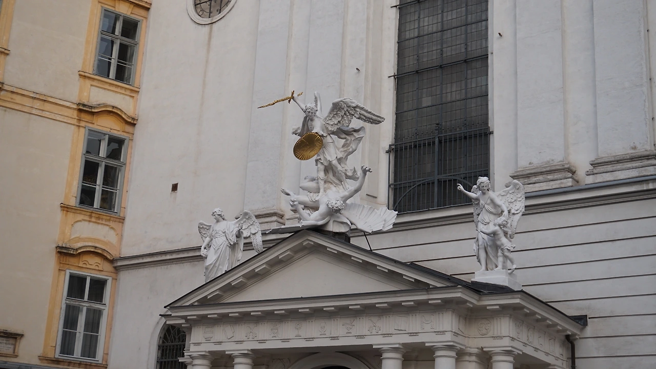 우리가 미하엘 성당을 마지막 일정으로 둔 것은 계획한 것이 아니었다. 찾아가다 다른 명소가 나와 다른 곳에 들어가고, 찾다 찾다... 찾지 못해 마지막 일정이 된 것이었다. 우습게도 미하엘 성당은 우리가 다리 아프고 힘들다고 30분 넘게 앉아 있었던 호프부르크 왕궁 입구 앞 벤치 뒤쪽에 위치해 있었다. 허탈하긴 했지만 웃음이 났다. 그래도 계획한 일정을 모두 다 이행했기 때문에 홀가분한 마음이 들어서였다.