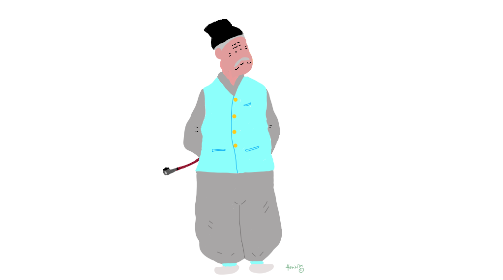 할아버지는 팔을 쭉 뻗어 곰방대에 불을 지피고는 두서너 모금을 쭉 빨아들이셨다.