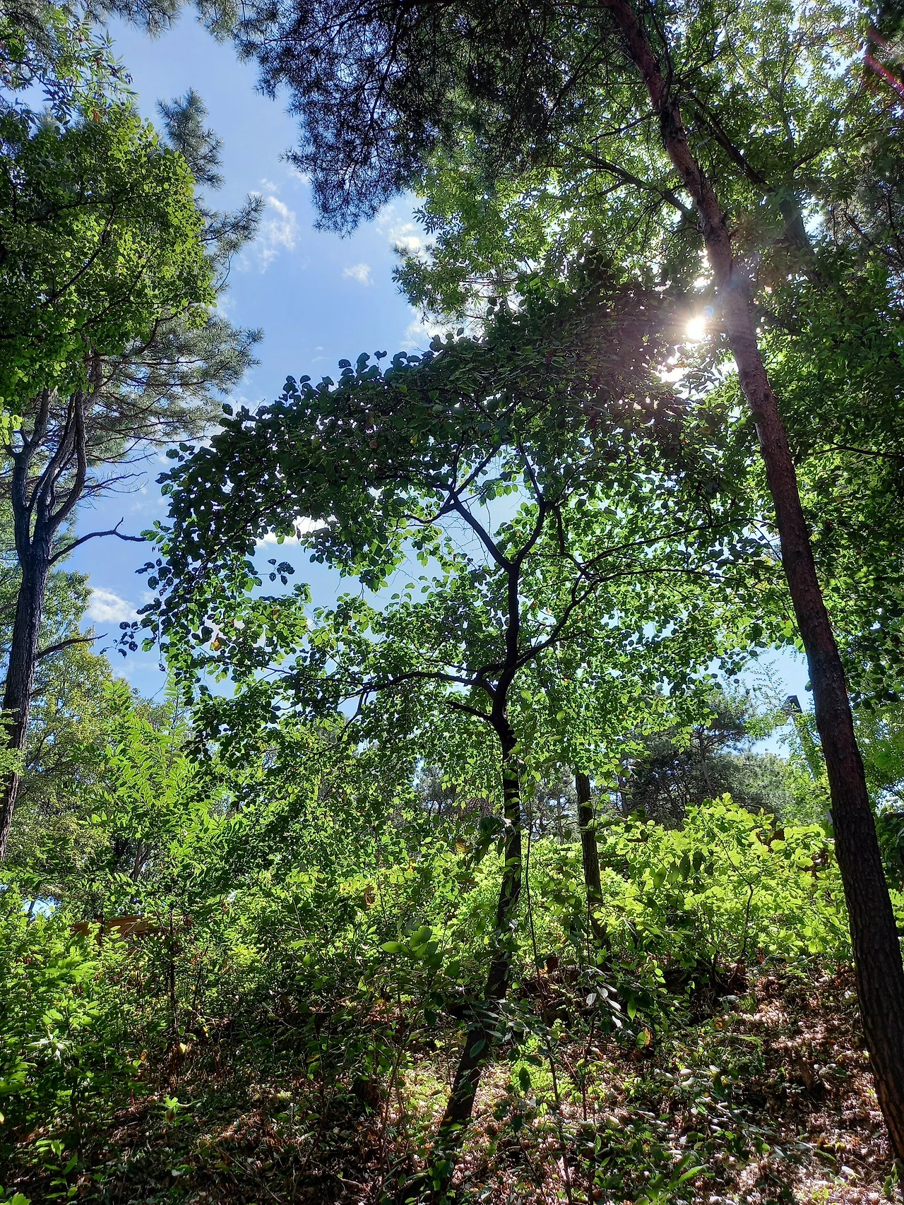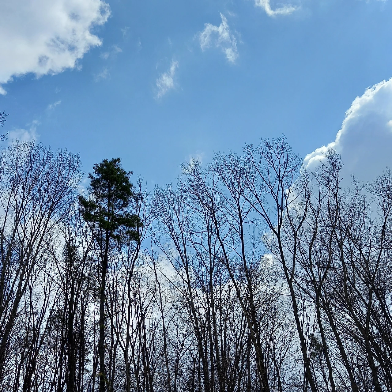 '청명한 하늘을 담은 숲' photo 갱이꽃송아리 담뿍 눌러 담은 망울들이 비쩍 마른 나뭇가지에 터질 듯 들썩이며 앉아있다. 한숨 자고 나면 황량한 산등선 위에 개나리, 진달래, 찔레꽃들이 활짝 피어 생글 댄다. 또 한숨 자고 돌아보면 노오랑 꽃가루 뒤집어쓴 뒤영벌 한 마리, 꽃나무 독차지하고 신이 나서 '부릉부릉' 이 작은 산은 다복하다.