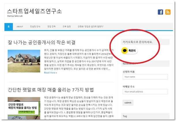 스타트업세일즈연구소에 적용된 카카오톡 채널