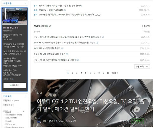 엔진 오일이나 미션 오일 등은 자동차 오너라면 누구나 때를 놓치지 말아야 하는 것. 자동차 수리 명장들이 하는 말씀이 오일만 제때 갈아도 10년은 더 탄다고 한다. 엔진 오일, 미션 오일, 브레이크 오일, 파워스티어링 오일 등 신경 써야 하는 오일 종류도 여러 가지라, 아예 오일만 전문으로 교환해주는 이른바 ‘오일샵’이 많아졌다. 수많은 오일샵 중 성남시 판교에 위치한 ‘the H’의 블로그(https://blog.naver.com/thehman)를 한번 살펴보자. 시공하는 모든 차량 별로 고해상도의 사진과 더불어 모든 오일 교환 과정을 순서대로 보여준다. 주 2회씩 꾸준하고 아주 자세하게 블로그를 올리고 있다. 각 차종별로 어떤 오일이 가장 적합한 지, 커버는 어떻게 탈거하는지, 잔유 제거는 어떻게 하는지, 필터 교환과 정량 확인 등등 결코 대충이란 없다. 그러다 보니 자동차 동호회에서도 입소문이 자자하다. 수많은 오일샵, 카센터 중에 어디는 잘되고 어디는 잘 안되는 이유를 알 것 같다. 불황은 세상이 만드는 것이 아니다. 내가 만드는 것이다.