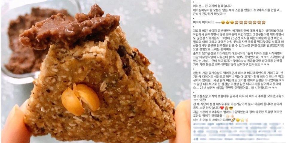 이 사진을 올리면서도 너무 부끄러웠던 것은 저렇게 아름답고 샤랄라 한 이유로 채식을 시작한 건 아니어서 참... 그렇지만 여하튼 저 이유도 아예 틀린 건 아니다. 첫 글에서 말하다시피 내 폭식과 절식의 반복, 그 이유로 채식을 한다는 이야기를 이렇게 구체적으로 누군가에게 이야기한 적은 브런치에서가 처음이다. 다이어트를 하면서 빵을 못 먹는다는 사실이 가장 슬퍼서 비건 베이킹, 밀가루 버터 설탕을 안 쓰고 빵을 만들 수 있다는 사실을 알고 여러 번 시도로 성공한 이후 빵에 대한 갈망이 많이 사라졌기 때문에서도 하나의 이유가 되었다. 2월 9일 내 인스타그램 계정에 채식을 선포한 날 난 저렇게 아름답게 내 이유를 포장하며 고기를 안 먹기로 결심을 했다.