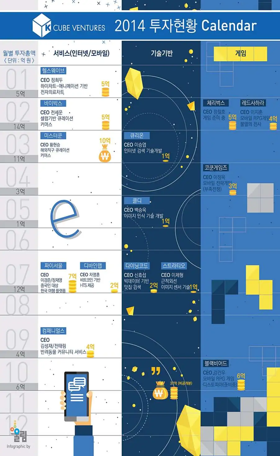 김범수 의장은 2012년 3월말 소프트뱅크벤처스 심사역 출신의 임지훈 내정자와 손을 잡고 케이큐브벤처스를 설립합니다. 김 의장의 지분 100%가 들어간 VC로, 임지훈 당시 수석심사역을 대표로 임명하죠. 이를 두고 다양한 해석이 오갔지만, 분명한 건 김범수의 사람이라는 점입니다. 다음은 임지훈 내정자가 자신의 블로그에 올린 케이큐브벤처스 설립 당시의 소회입니다.