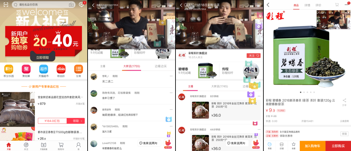 올해 솽스이(双十一; 광군제)에서도 이들의 활약이 빛났습니다. 티몰은 약 6만개의 라이브를 방영했으며, 쑤닝은 111명의 왕홍이 3일 동안 라이브를 진행하며 제품을 판매했습니다. 징동은 리우창동 창업주가 직접 라이브에 출연했는데, 700만뷰가 나왔습니다.