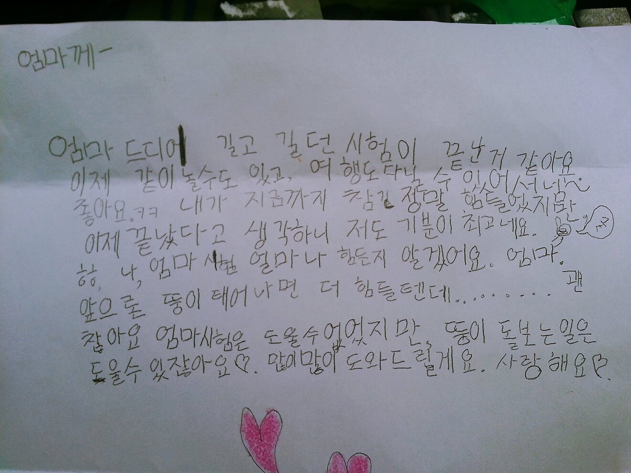 임용고사를 치른 날 큰아이가 쓴 편지