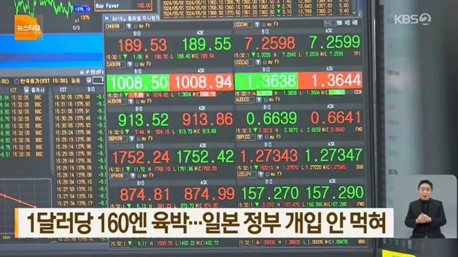 환율이 160엔을 넘어선 전적은 이미 있다. 2024년 6월 1달러당 160엔을 넘어서는 등 37년 만의 최고치를 기록하자, 정부와 은행에서는 엔화 매수 개입을 단행했다.