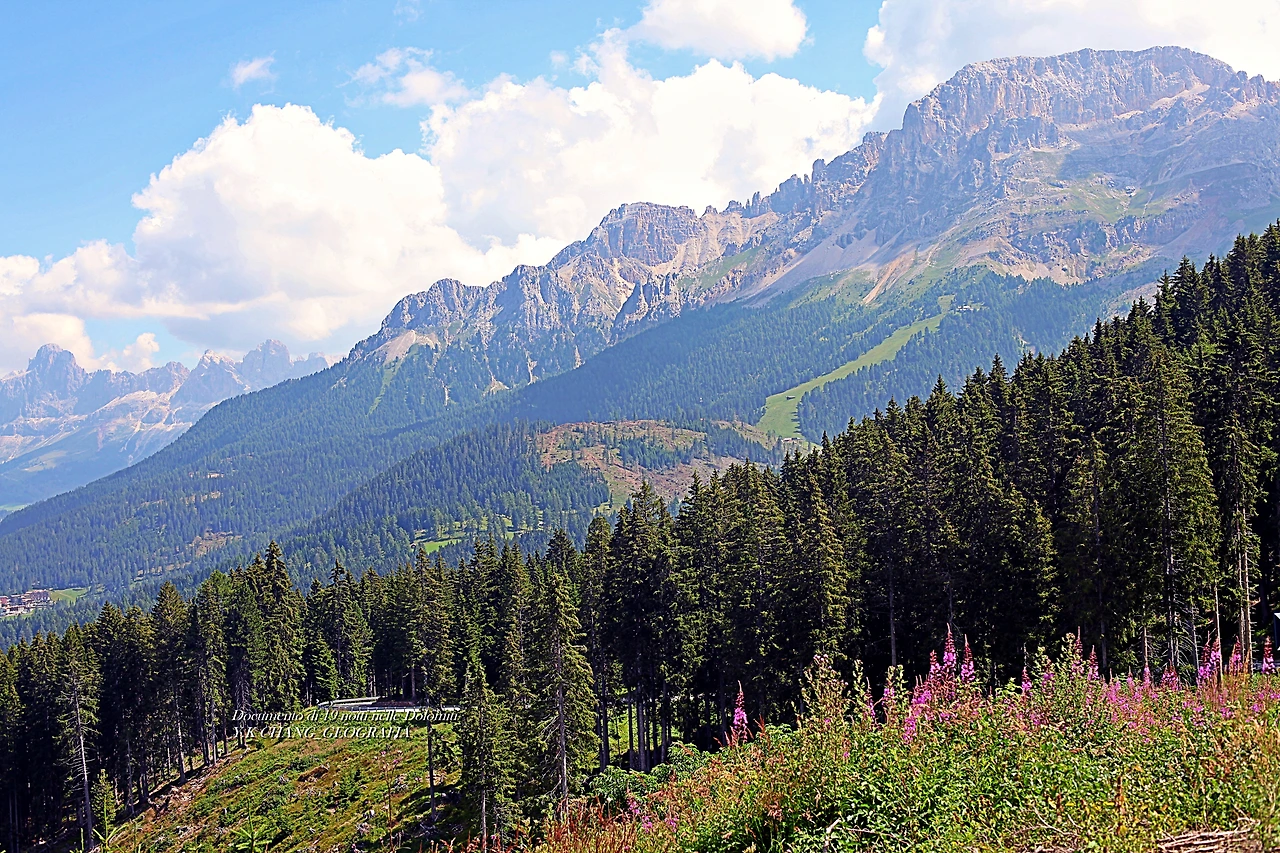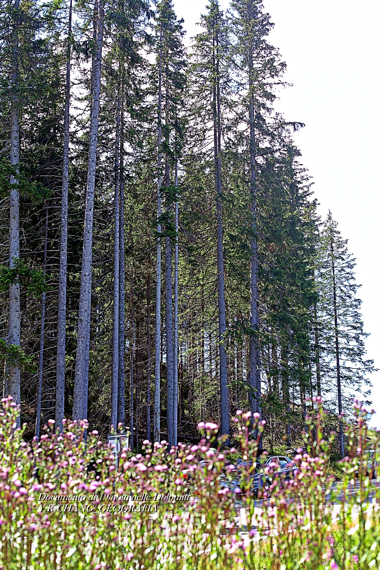 또 도로변에서는 돌로미티의 옥수가 쉼 없이 흐르고 있었는데 잠시 자동차를 정차해 놓고 물소리와 뭇새 소리들을 듣고 있노라니 발밑에서는 새파란 이끼들과 이름 모를 야생화들이 얼굴을 내밀며 수줍어하고 있었다. 우리가 라바제 고갯길에 주차를 한 다음에도 이 같은 풍경은 계속 이어졌다.
