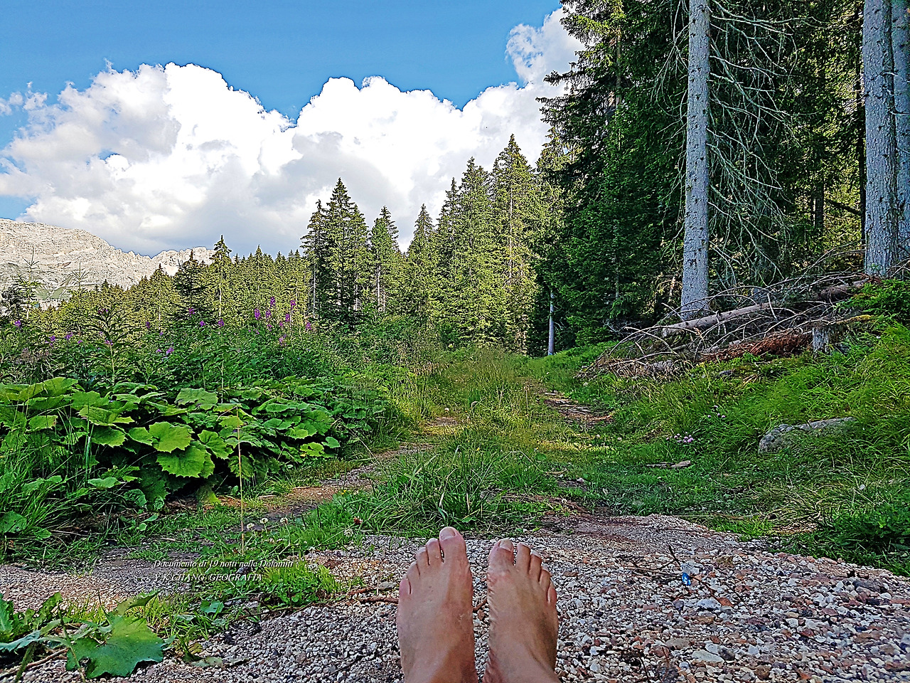 이런 황당한 일을 겪으신 분들이 있을까 모르겠다. 먼저 위 자료사진 한 장을 설명하면서 오늘 포스트를 이어가기로 한다. 두 발이 가지런히 놓인 곳은 중국산 싸구려 왕골 돗자리(3.5유로짜리) 위에 누어서 찍은 사진 한 장이다. 돌로미티 빠쏘 디 라바제 고갯길 근처의 도로변에 위치한 이곳은 나무 그늘이 드리워져 돗자리만 깔면 기막힌 명소로 변한다. 가끔 폭우가 쏟아졌는지 도로 가장자리에는 작은 도랑이 생겼고, 그곳으로 자갈들이 자갈자갈 깔려있어서 돗자리를 깔기에 마침맞은 곳이었다.