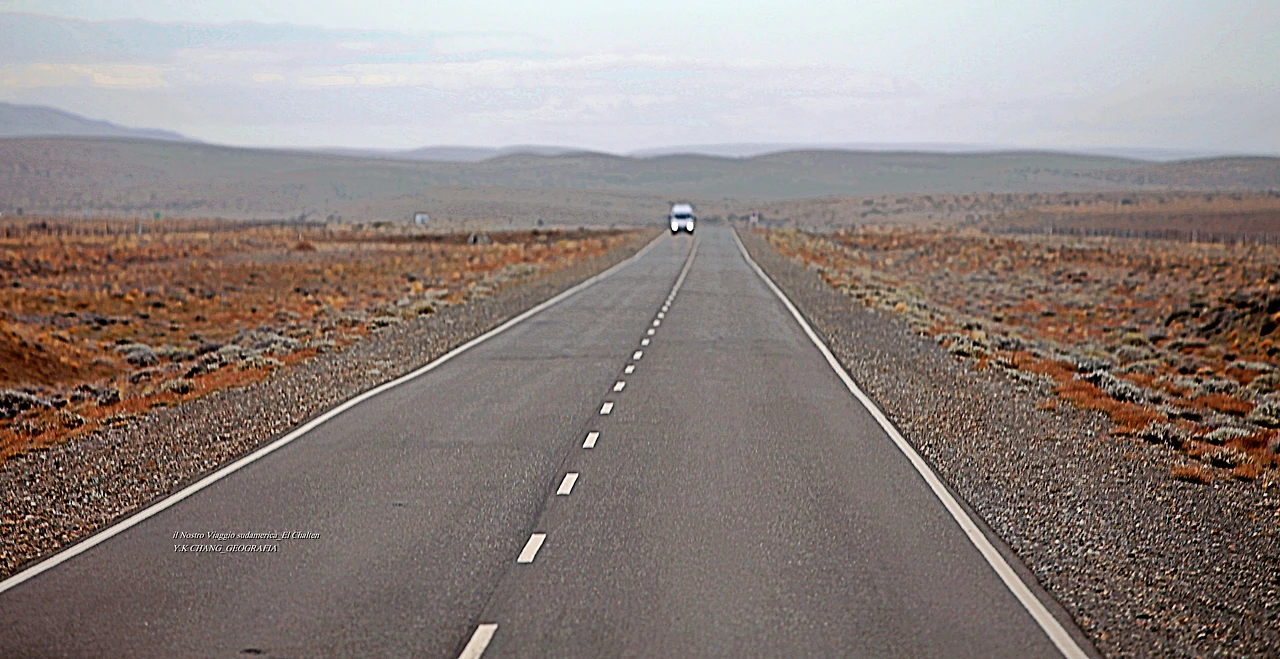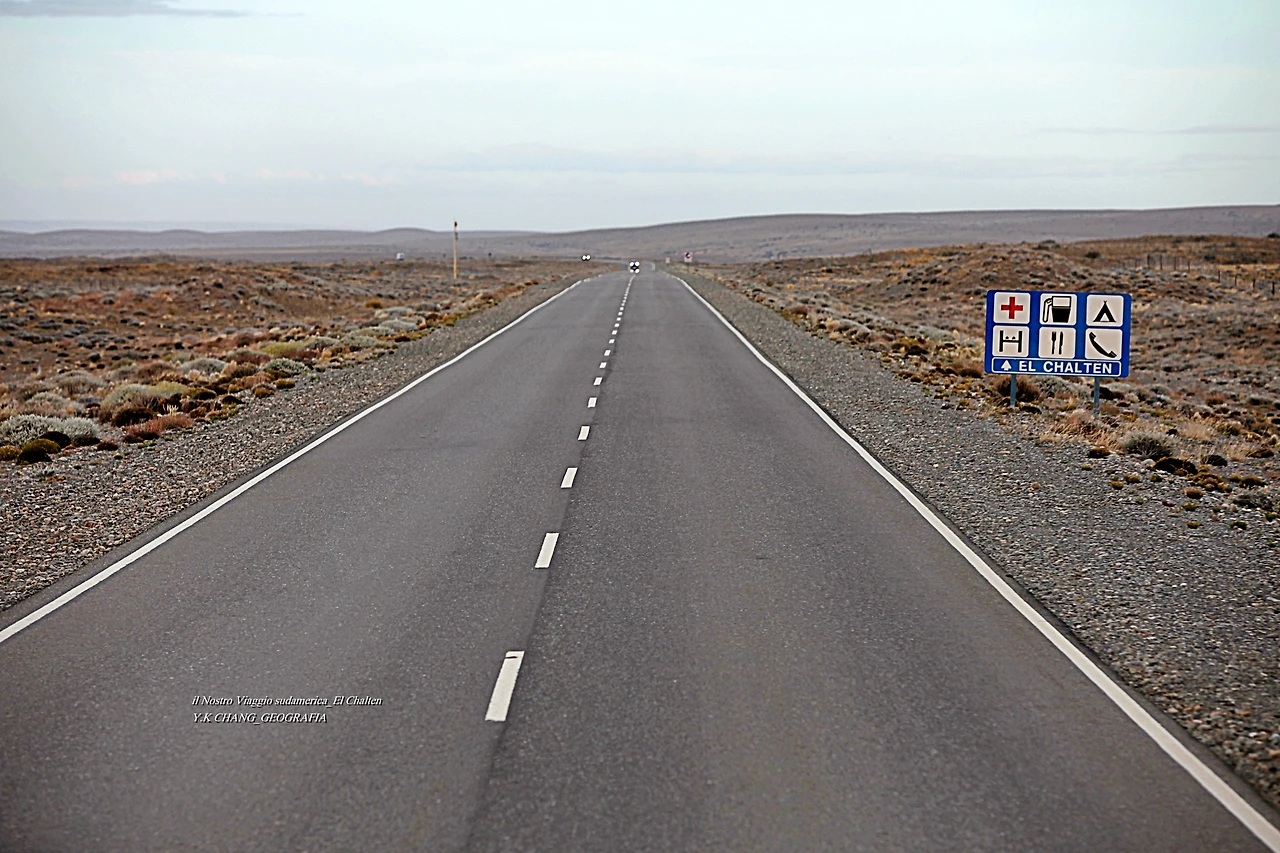 Stavamo andando a El Chalten, dove si trovava la montagna Fitzroy. La strada per El Chalten è un paesaggio completamente diverso da quello che si incontra nella pianura. Fuori dalla finestra dell'auto, la calotta glaciale era usata per unire i ghiacciai e i laghi alla testa per creare un paesaggio irreale.