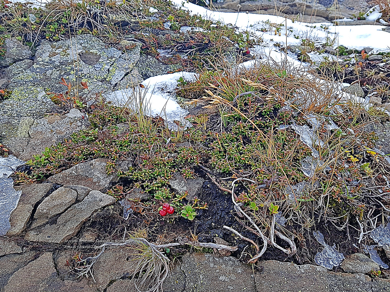 눈과 살얼음으로 덮인 돌로미티의 명소 빠쏘 디 지아우(Passo di Giau)에 사는 초목들이 엄동설한의 겨울을 맞이하고 있다. 촬영일시: 2020년 9월 26일 오후 4시 20분경