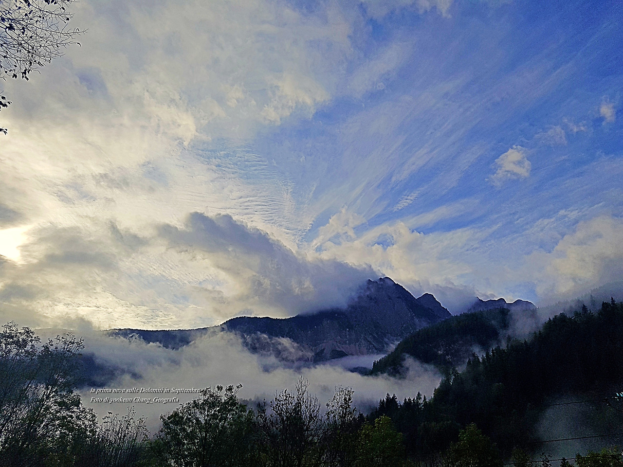 잠시 날이 갠 봘레 디 까도레(Valle di Cadire)의 아침 풍경. 촬영일시: 2020년 9월 25일 오전 8시 52분경