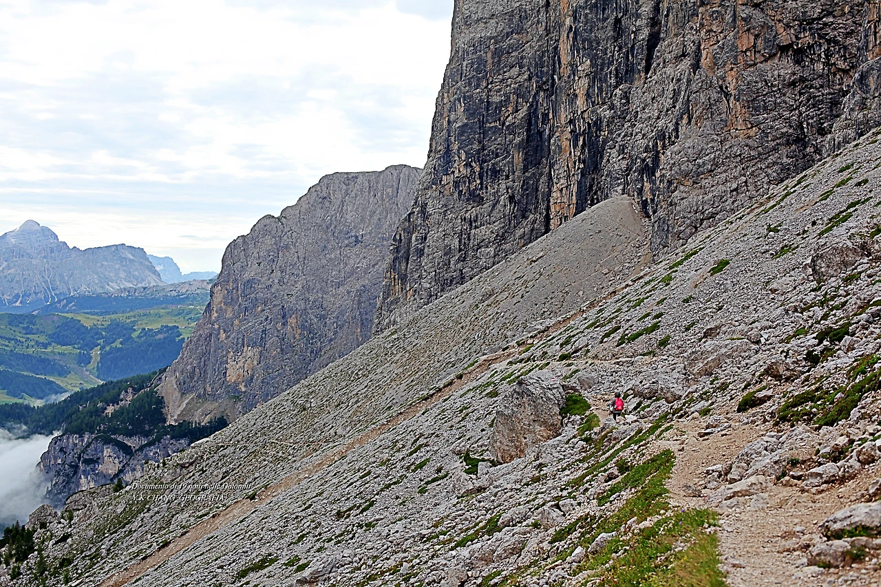 돌로미티 알따 바디아에서 트래킹이 시작된 이후로 발걸음이 바빠졌다. 가르데나 고갯길 마루에서부터 시작된 산행은 동네 뒷산을 오르는 것과 비슷한 수준이었다. 초기에 약간은 가파른 고갯길을 올라서면 그다음부터는 산길이 길게 수평으로 이어지는 것이다.