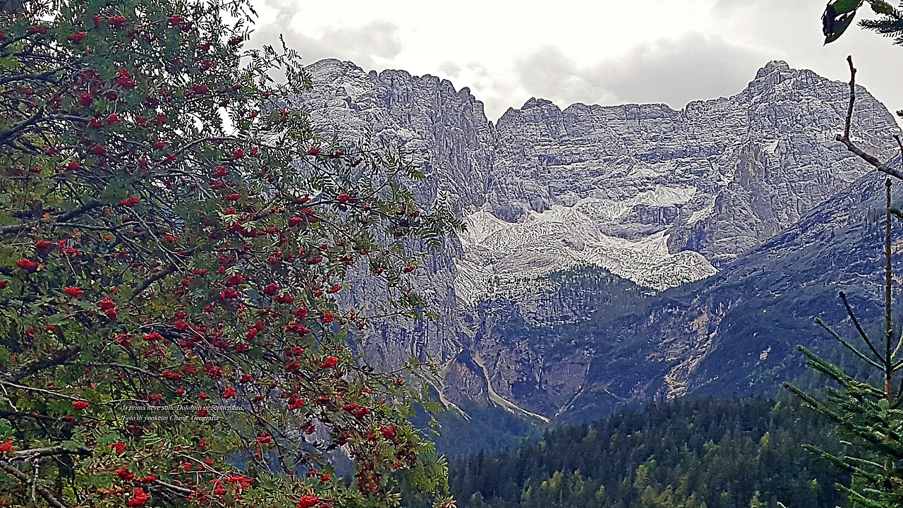 돌로미티를 수놓은 9월에 내린 첫눈.. 신부가 꽃단장을 한 모습과 흠사하다는 생각을 했다.