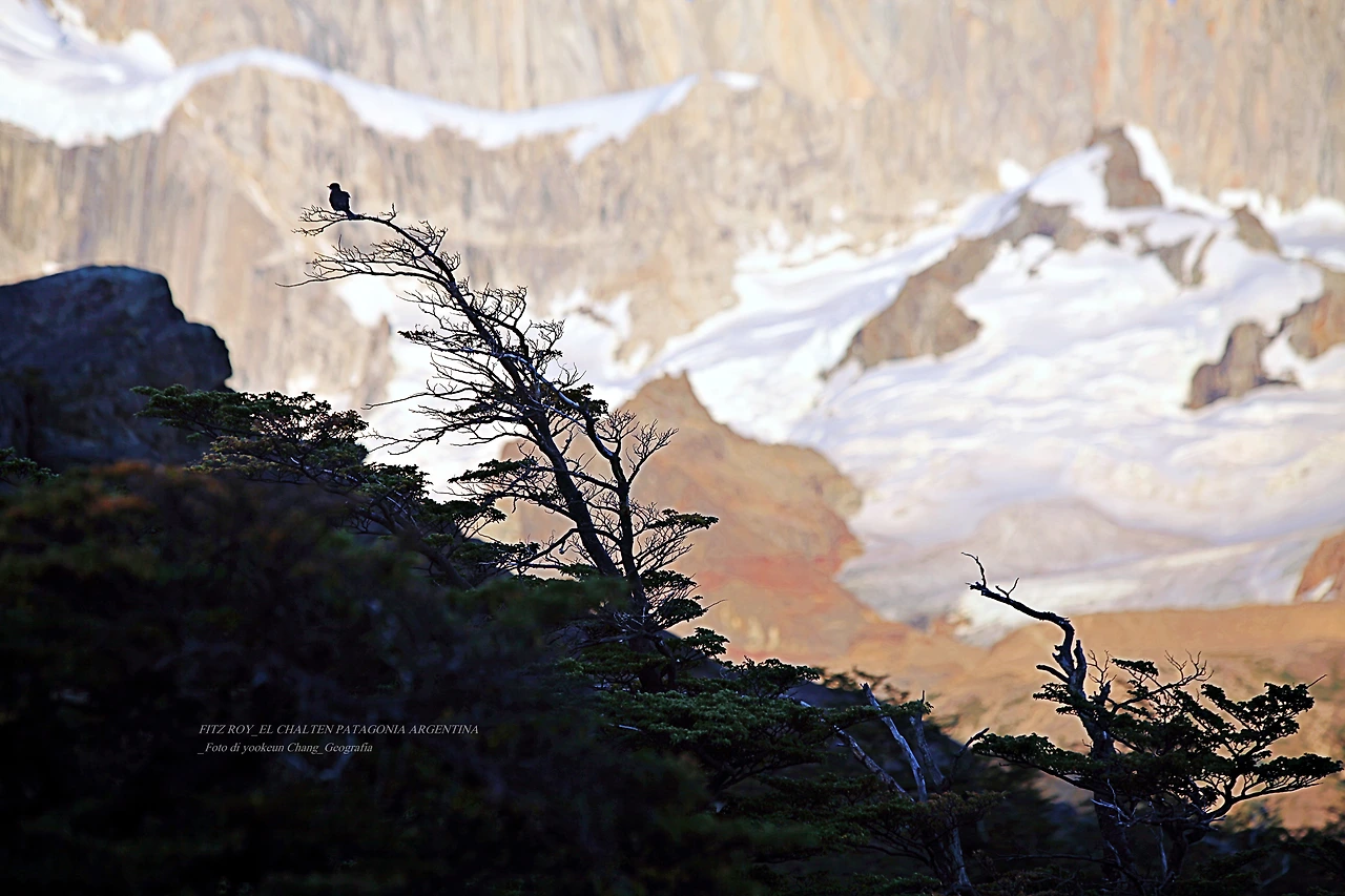 새 한 마리와 우리.. 우리는 한 곳을 응시하고 있었지. 그곳은 피츠로이(Monte Fitz Roy)라 불리는 곳. 오래전 이곳에 살던 원주민 인디오들은 이 산을 담배 피우는 산(Cerro Fitzroy)이라 불렀다. 해발 3,405미터에 달하는 뾰족한 바위 덩어리에 부딪친 수증기들이 구름으로 바뀌면서 담배연기를 연상케 했던 거야. 아르헨티나 산타 크루즈 주(provincia di Santa Cruz)에 위치한 피츠로이는 빠르꼬 나찌오날레 로스 글라시아레스 (parco nazionale Los Glaciares) 국립공원에 소속된 명소. 우리는 이곳을 두 번째 방문했다. 머나먼 길을 떠났던 거야. 길은 멀었지만 길 위에서 행복했지. 먼발치에서 바라보면 가슴이 마구 설레었던 곳. 어느 날 아침 하니와 함께 피츠로이로 향했다. 이른 아침 동이 트기도 전에 산길을 따라 피츠로이로 가던 길. 그곳에서 새 한 마리를 만났어. 그는 우리가 바라보며 걷던 피츠로이를 바라보며 생각에 잠겨있었어. 무슨 생각을 하고 있었을까.. 인간들은 혼자 있을 때 자기를 돌아보는 일이 익숙하지 않아. 그저 외롭거나 고독하다고 생각하지. 누군가 소통해야 직성이 풀리는 것. 그런데.. 우리가 만난 새 한 마리의 소통법은 다른 것 같아. 하늘과 산과 숲 그리고 자기.. 우리는 피츠로이의 품에 안기고 싶었다. 하지만 그는 달랐지. 아침햇살에 온 몸을 맡기며 곧 다가올 하늘 저편을 떠 올리는 거야. 영원을 꿈꾸는 새 한 마리.. 먼 길을 떠나 만나게 된 담배 피우는 산. 그 산에서 한 곳을 바라본 두 생물의 서로 다른 생각을 해 보는 거야. 길을 걷는 동안 내내 그는 나무 꼭대기 위에서 산을 바라보고 있었다. 여행자는 길 위에서 행복하다.