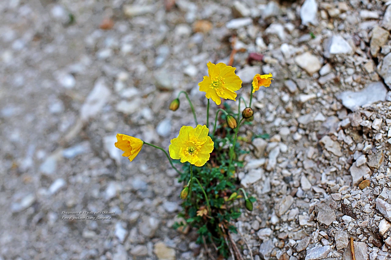 참 특별한 만남이었다. 본격적인 돌로미티 트래킹이 시작되면서 만나게 된 샛노란 돌로미티 야생화의 이름은 빠빠베로 알삐노 지알로(Papavero alpino giallo (Papaver aurantiacum)_알삐노 노란 양귀비)였다. 노란 양귀비는 동유럽과 유럽 그리고 이탈리아의 알삐와 이탈리아 전역에 분포하며 살고 있었다.(링크 참조)