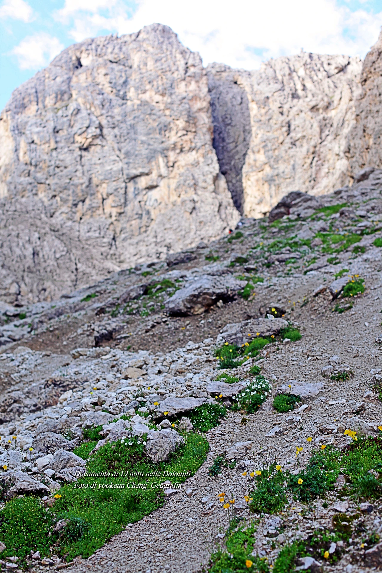 이들 꽃무리 중에 샛노란 돌로미티 양귀비들이 이곳 저것에 널려있었는데 여름의 돌로미티에 풀꽃들이 없었다면 얼마나 삭막할까..