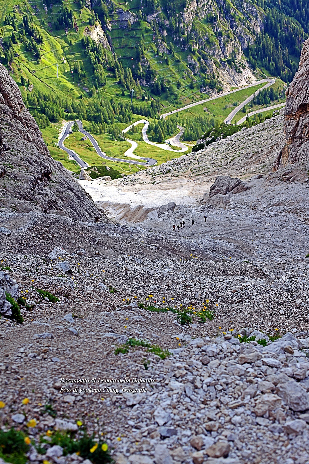 잠시 우리가 지나온 길을 내려다보니 노란 양귀비들이 계곡 사이로 빼곡하다. 돌로미티를 천하절경으로 만들어주는 일등 공신이 샛노란 풀꽃일까.. 돌로미티에 첫눈이 내렸고 10월로 접어들었으니 너희들을 다시 만나려면 또 한 해를 보내야겠구나.. 기록, 돌로미티(Dolomiti) 19박 20일은 계속된다.