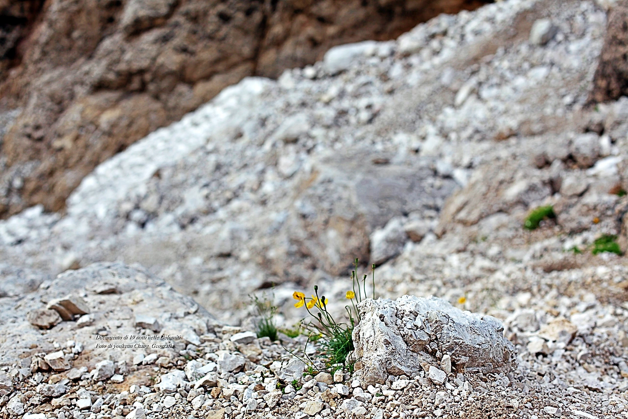 황량한 돌무더기에 생명력을 더해주는 돌로미티 노랑꽃양귀비..