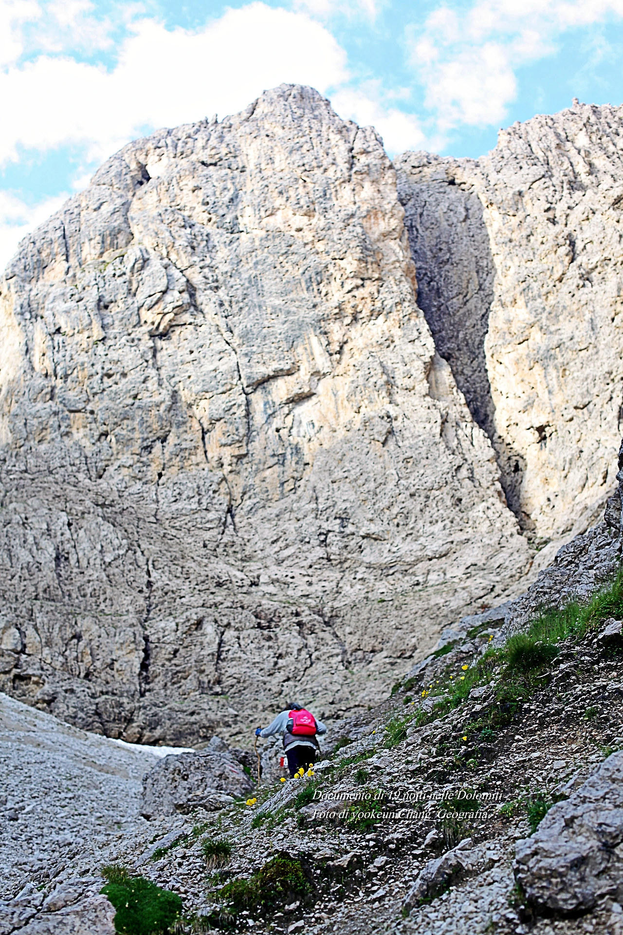 돌로미티 노랑꽃양귀비가 하니를 뒤따라 다녔다. 참 묘한 조화였다. 거대한 바위산과 한 여인 그리고 노랑꽃양귀비.. 그중 하나만 빠져도 돌로미티의 삐쉬아두(Rifugio Pisciadu)는 생명력을 잃고 마는 것일까.. 저만치 앞서가는 하니를 바라보다가 은근히 측은지심(惻隱之心)이 고개를 쳐드는 것이다. 동고동락한 사람.. 그 사람이 저만치 앞서 가고 있는 것이다.