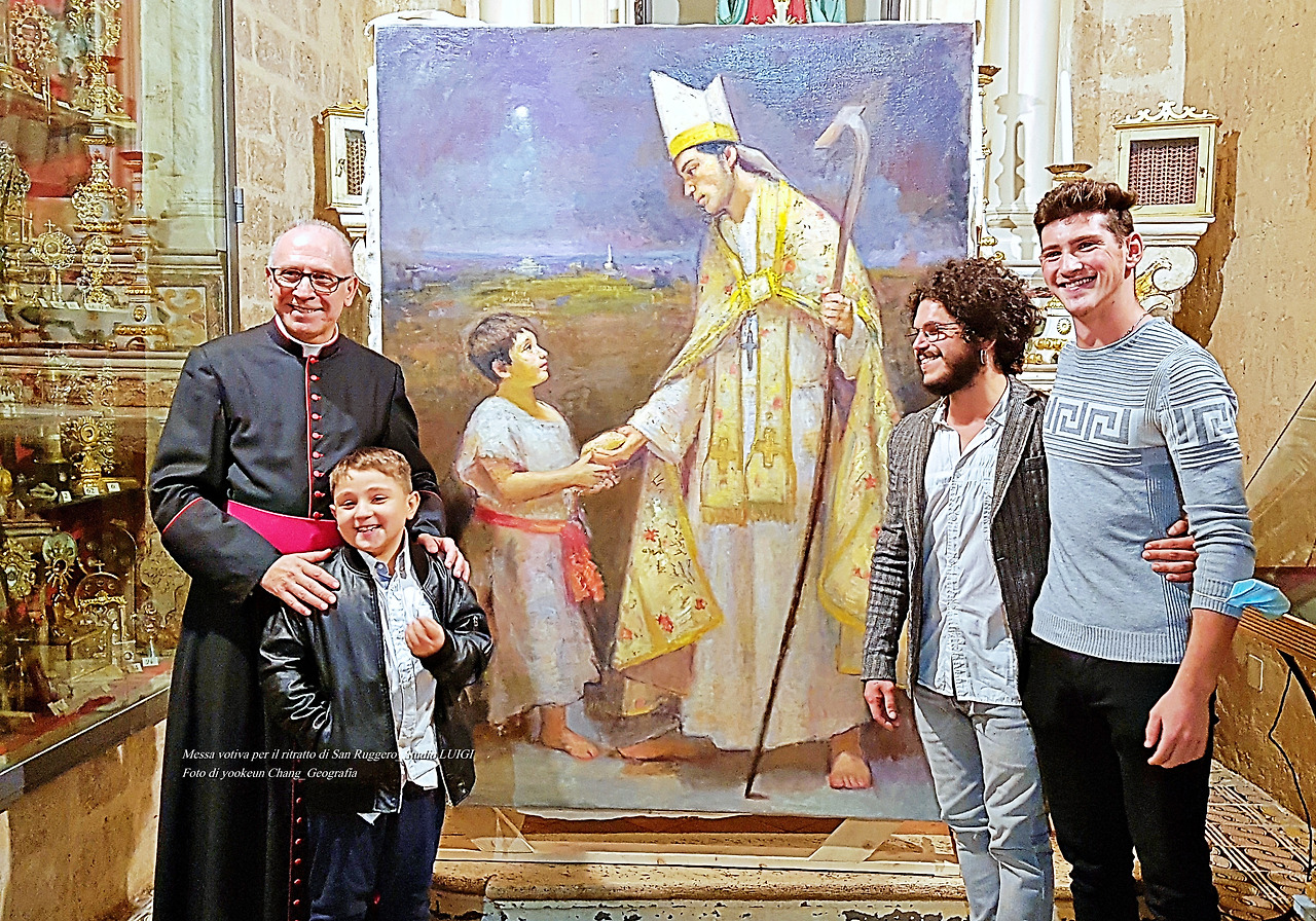 서기 2020년 10월 11일 일요일 오후 8시경, 이탈리아 남부 뿔리아 주 바를레타의 유서 깊은 교회 라 쁘레뽀시뚜라 디 산 지아꼬모 마찌오레(La Prepositura di San Giacomo Maggiore)에서 특별한 미사가 진행되었다. 미사는 이 지역 수호성인 산 룻제로(San Ruggero)의 초상화 봉헌미사였다. 봉헌된 초상화는 하니의 그림 선생님 루이지 라노떼(Luigi Lanotte))가 그린 작품으로 45일이 소요된 걸작이다.
