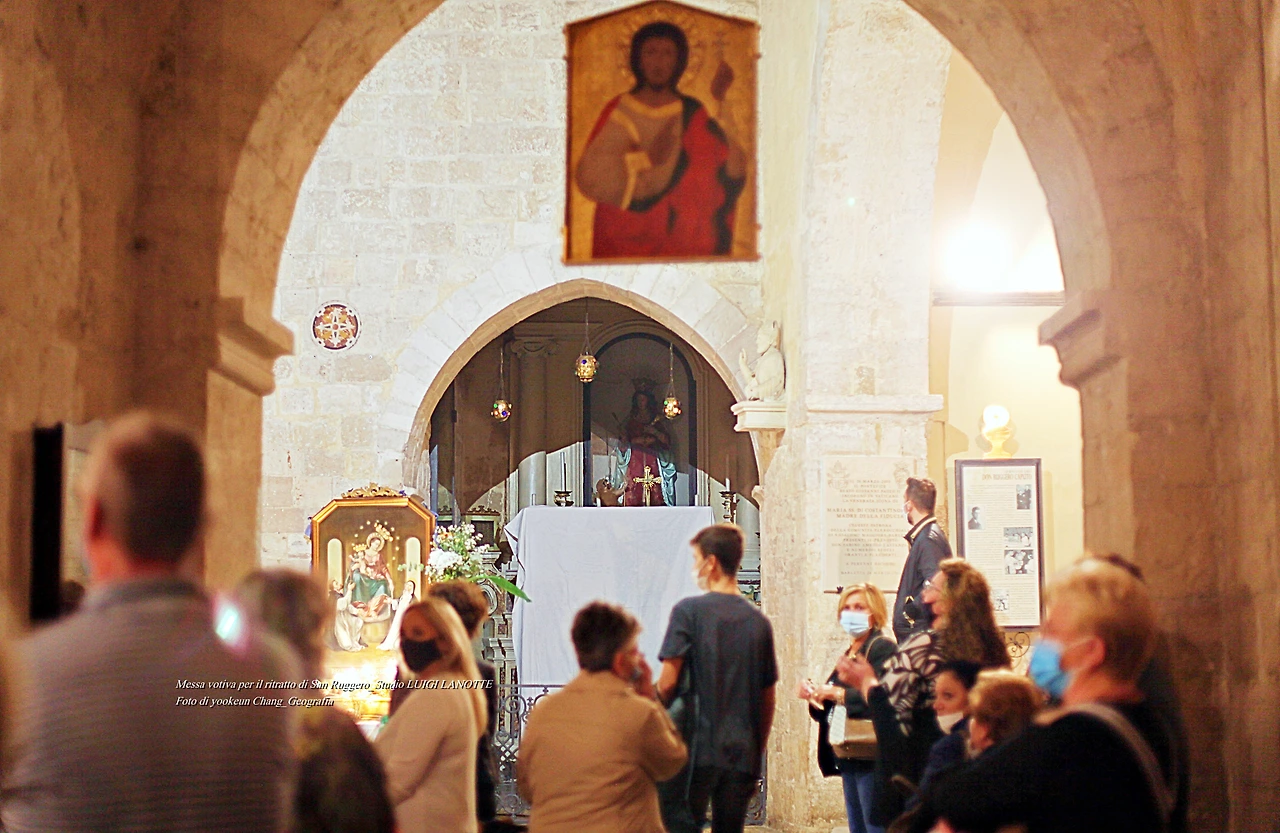 이탈리아 수호성인의 초상화를 그리는 과정 전부를 곁에서 지켜본 나는 이 행사에 초대받아 봉헌미사 현장을 기록에 남겼다. 봉헌미사는 저녁 미사에 이어 특별히 따로 진행되었는데 이날은 산 지아꼬모 교회 신부의 회갑이 되는 되는 날이기도 했다. 이날 미사에는 교인은 물론 친지들과 바를레타 시민들이 교회를 가득 메우고 행사를 축하했다.