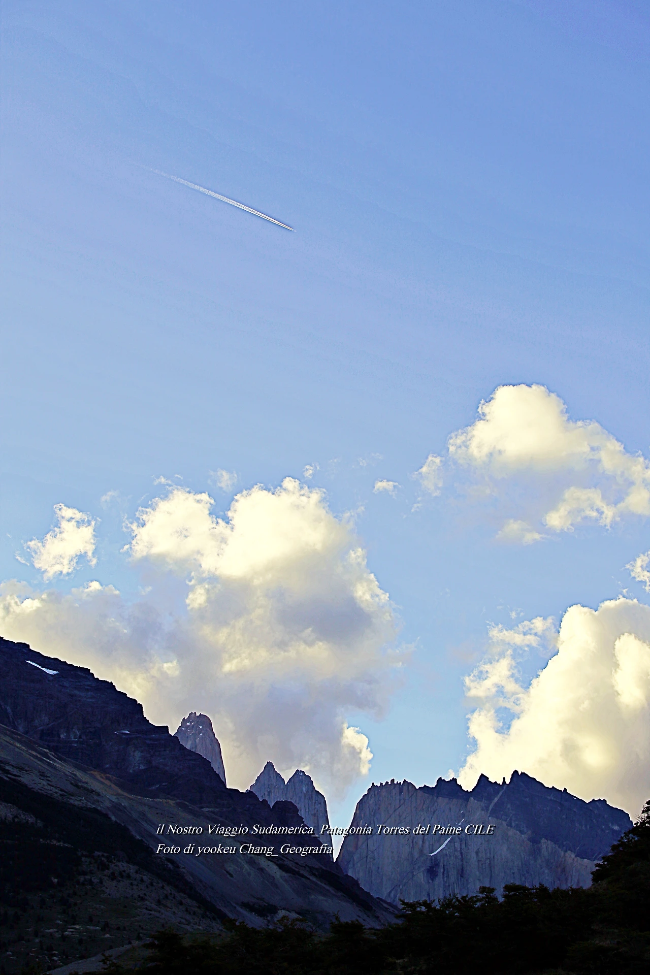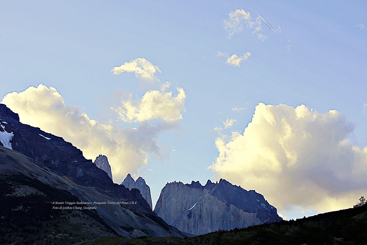 Chiunque potrebbe avere una montagna nel cuore. La montagna può essere la montagna dietro il paese o la montagna frontale che correva da bambino. Non si può tenere una montagna. Ma lo scoprirò più tardi. Quello che ho tenuto tra le braccia. andare su quella montagna.. Se vado in montagna.. Mi sento a mio agio. perché?..Penso.. Sono venuto da lì. Qualcuno era lì. La montagna mi ha chiamato. Sono andato a cercarmi coi piedi. Quindi un mondo senza montagne è impensabile. una montagna che è andata difficile con Hani. La montagna era in un altro continente in un paese lontano. È il parco Parco nazionale Torres del Paine. Molti sono venuti qui. Era a causa del mio massimo splendore. un luogo in cui i campi e le montagne si contrastano magnificamente. La gente si innamora a prima vista a un passo da lontano. La montagna ci ha chiamati. È un posto dove ho girato la strada. Attraversiamo l'Oceano Pacifico fino al continente sudamericano. E da Santiago del Cile fino alle pianure argentine. Ancora una volta dalle Punta Arenes al Puerto Natales. Da lì, ancora una volta, fino alla cima di Torres del Paine. le tre montagne che erano nel cuore. Seolaksan, Fitzroy, torres del Paine.