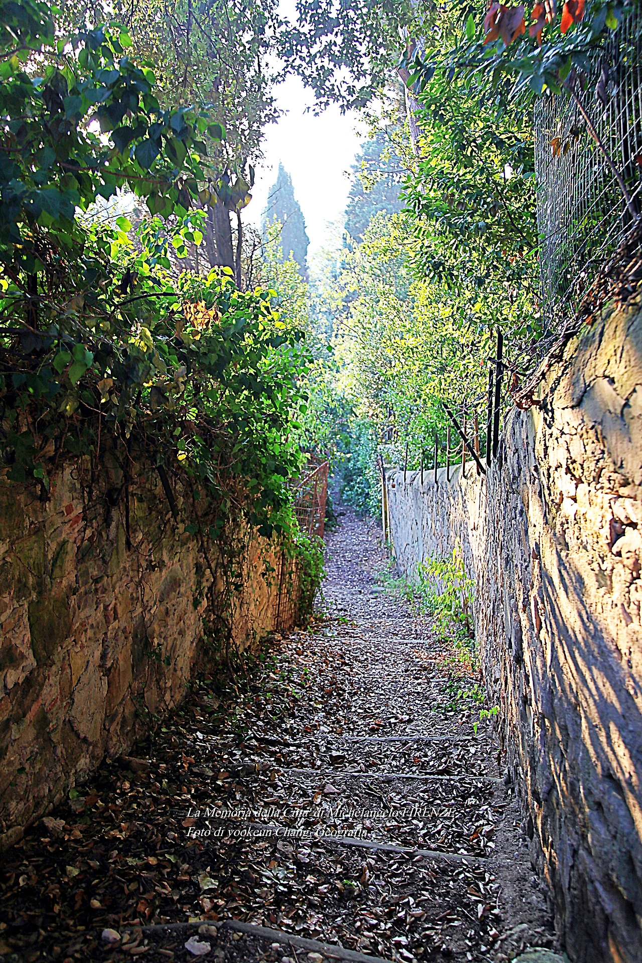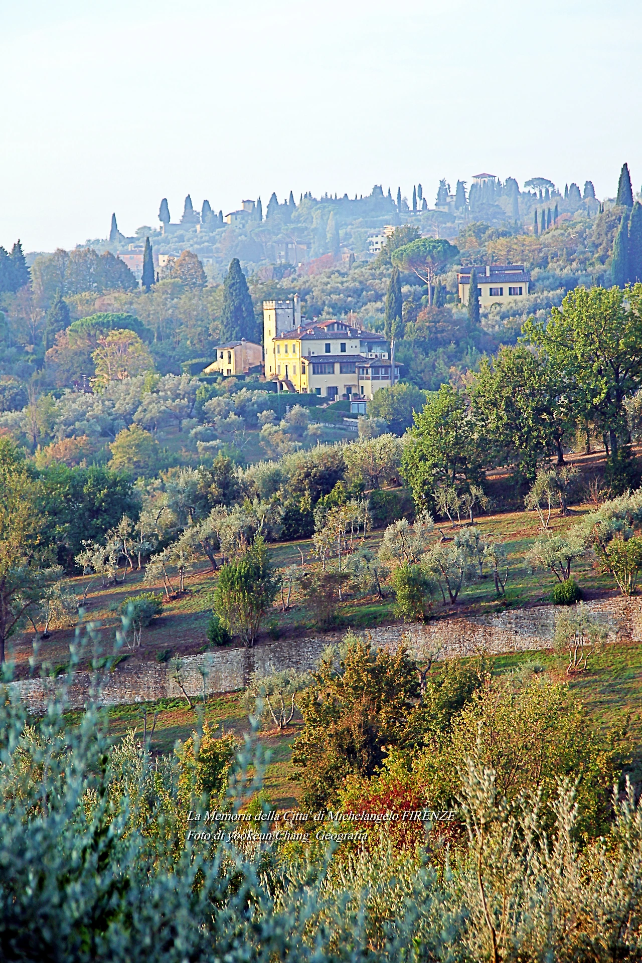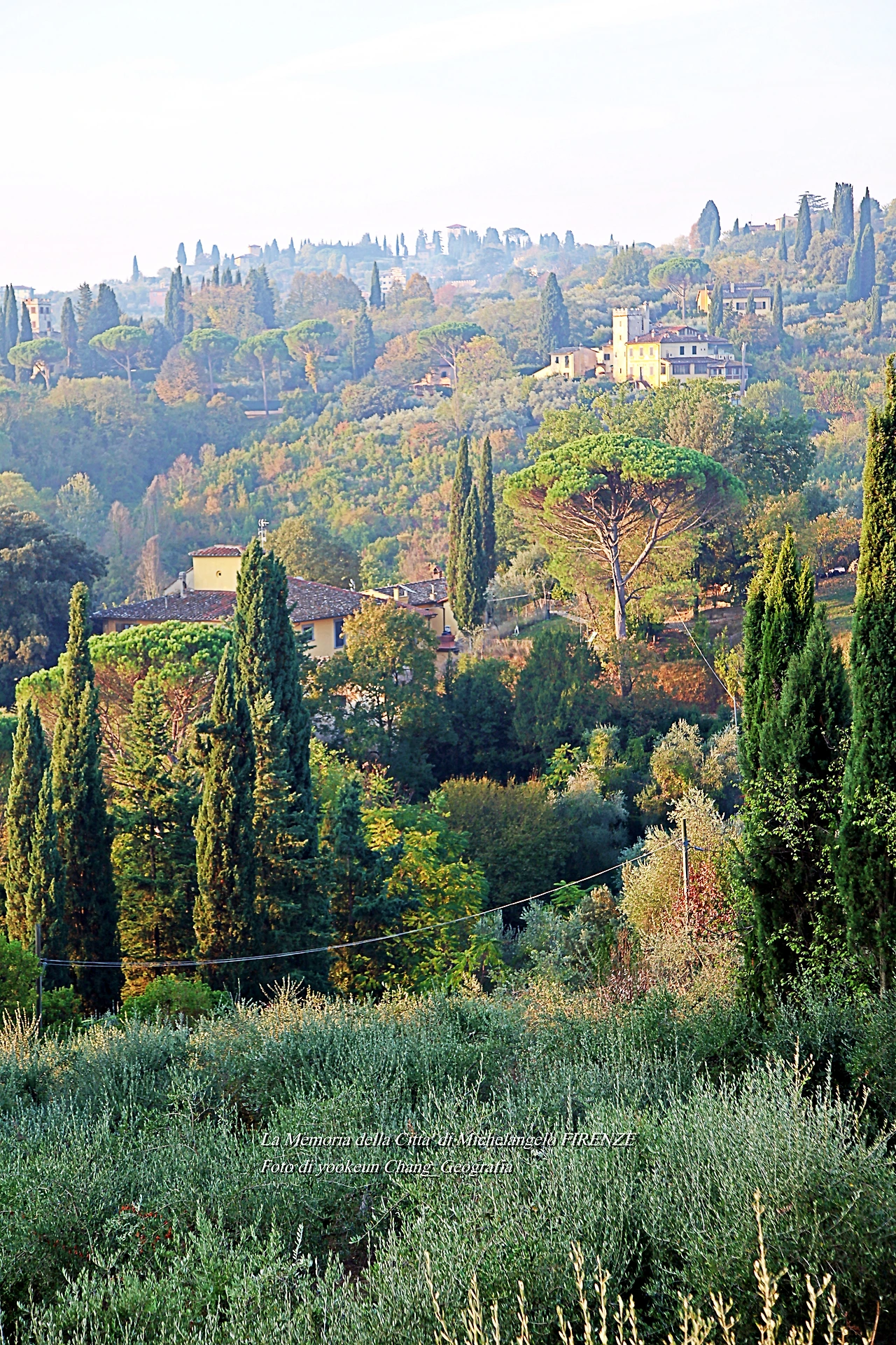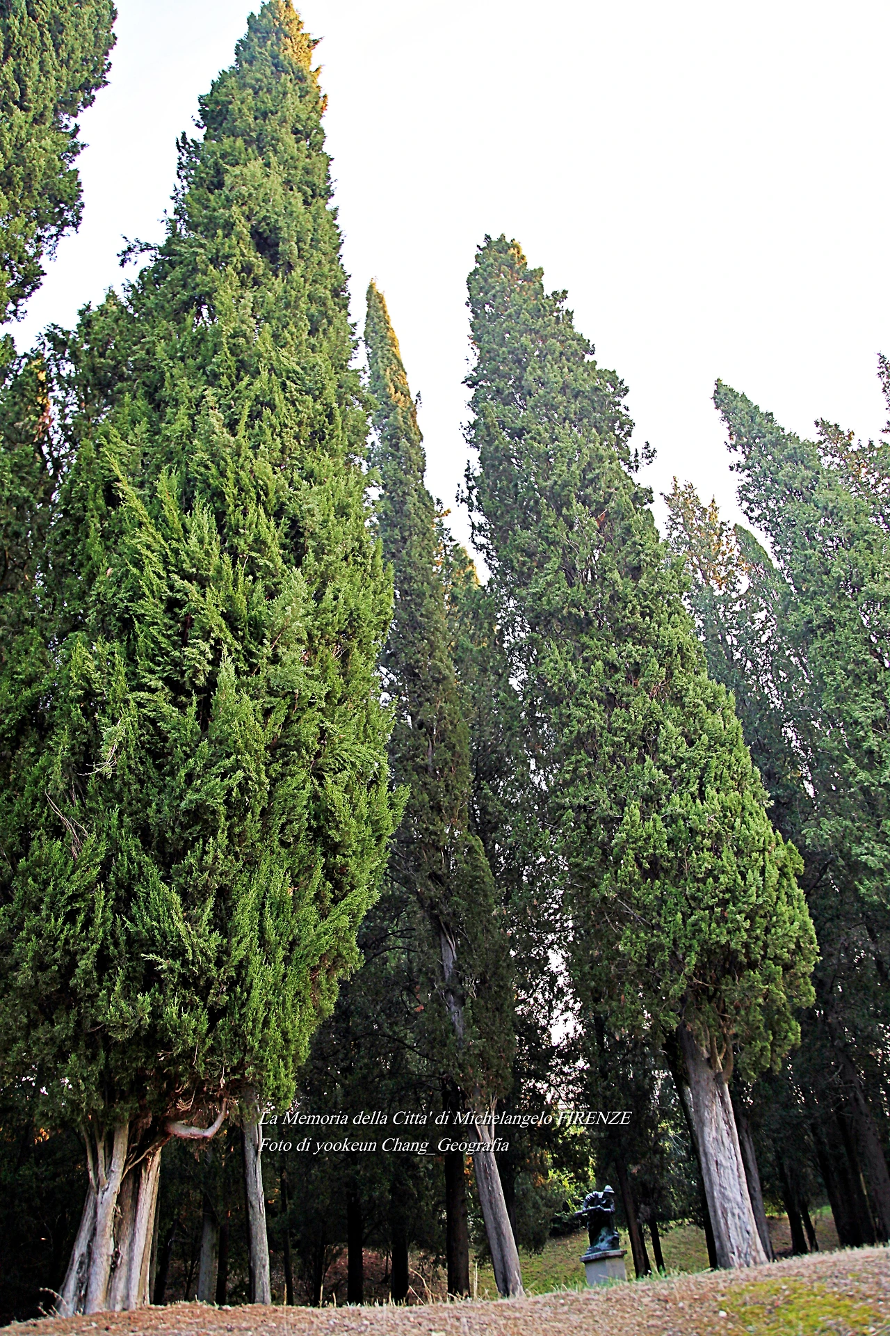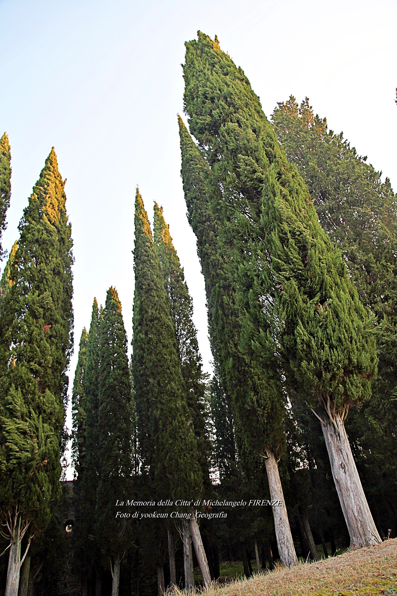 우리는 생각보다 발도장을 빨리 찍은 것 같다. 어느새 피렌체 시 외곽의 뷔알레 미켈란지올로(Viale Michelangiolo)로 빠져나오고 있었다. 아침햇살이 토스카나의 숲을 환하게 비추고 있는 곳. 그곳에는 무수한 사이프러스가 서 있었다. 만약 우리가 저곳을 벌건 대낮에 걸었다면 공포심은 덜하거나 없었을까.. 올리브 과수원에는 올리브가 까맣게 익어가고 있었다.