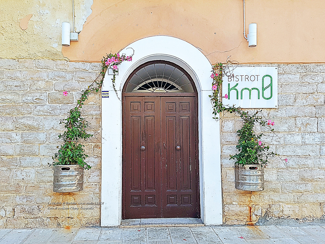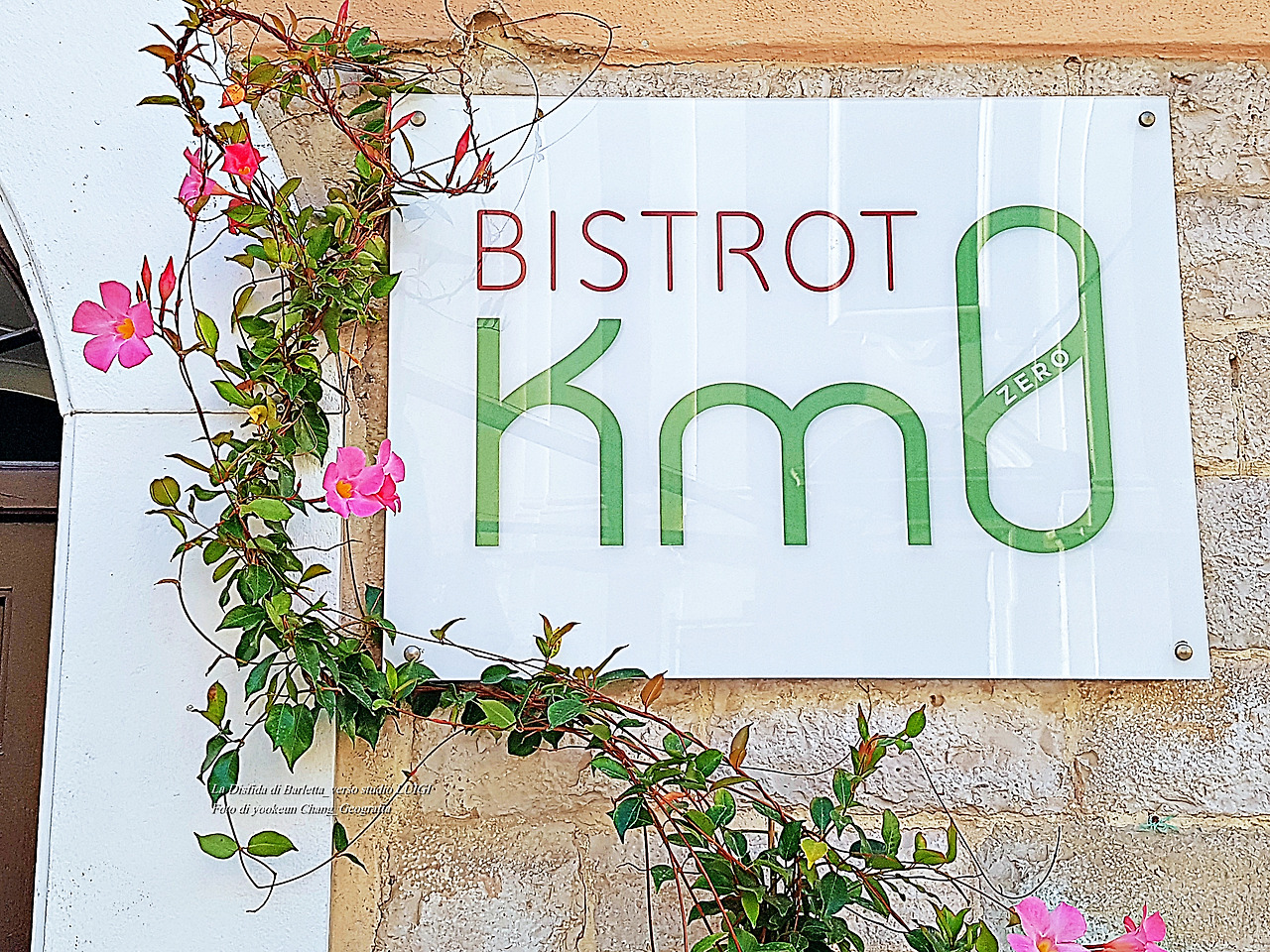 Bistrot Km0.. Di fronte al Listorante è sempre affollato. vicino a casa mia. La mattina del 9 ottobre scorso, intorno alle 8:50. Hanni ed io siamo passati da qui. Almeno due volte alla settimana, questo posto diventa eccessivo. a causa delle lezioni di pittura. Di solito la gente è affollata, ma la mattina è diversa. La porta è chiusa e stazionaria. Ci sono due piccole piante da fiore che sono state osservate. una porta chiusa.. una pianta che tocca la porta. C'è un'armonia meravigliosa. Piccolo ed equilibrato bar Bistrot Km0. dove la velocità si è fermata. È lì che la gente si raduna. un piccolo bar dove non si trovano le briciole. La gente sta facendo cadere il tempo della propria mente..? Un lavoro fatto di abitudini di coloro che sono stati costruiti per almeno 1000 anni. un luogo di armonia al di sopra del normale. Una figura di gente che vive in città accoglie la Mattina. Bistrot significa un bar. Bellissimo posto con un tocco umano.
