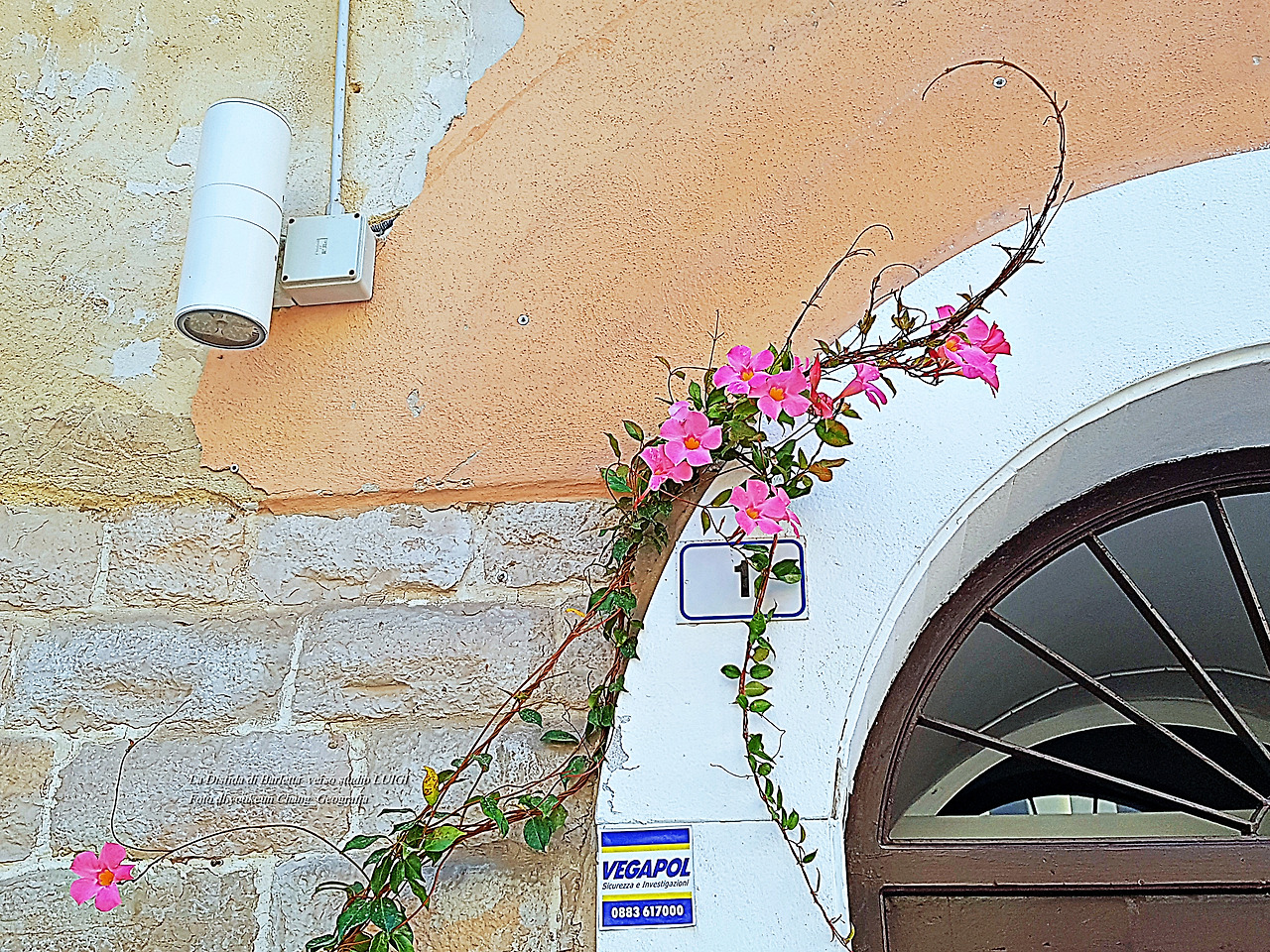 una porta chiusa.. una pianta che tocca la porta.
