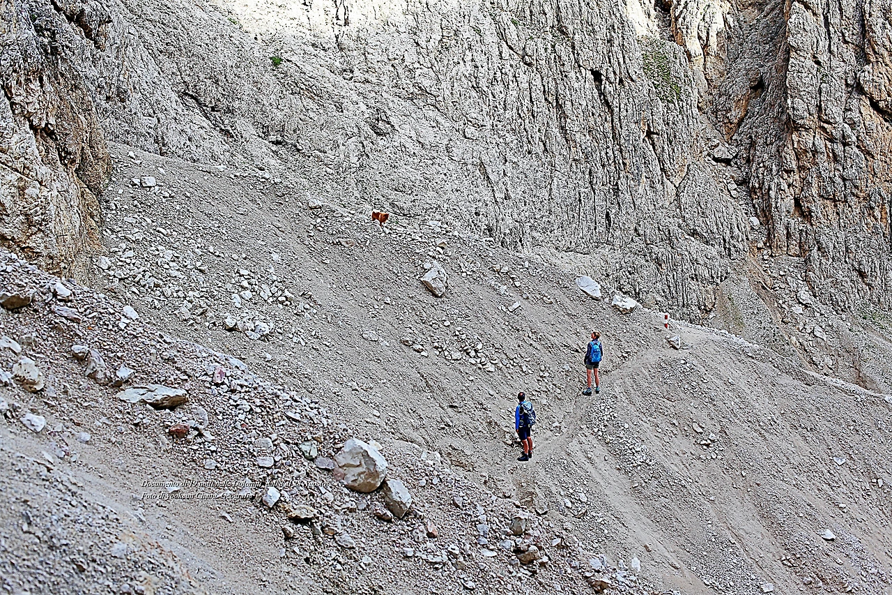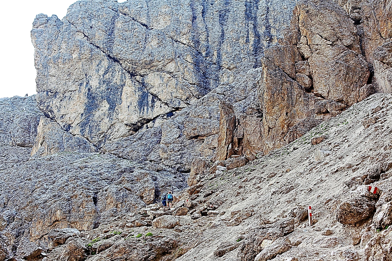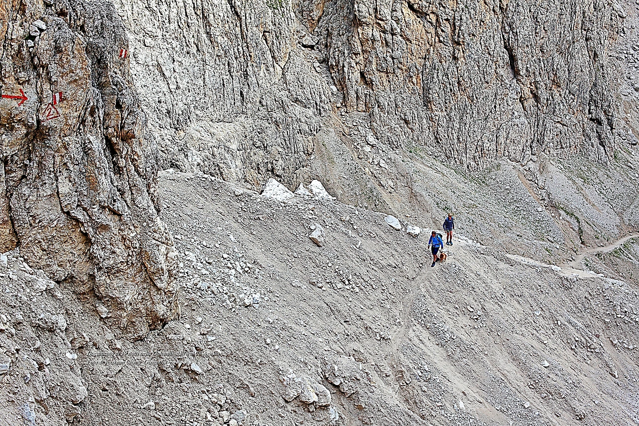 고도를 좀 더 높이자 돌로미티 노랑꽃양귀비는 점차 자취를 감추고 바위 덩어리가 태곳적 시간을 껴안은 채 우리를 맞이한다. 우리는 잠시 스쳐가는 바람이지만 만세토록 제자리를 지키고 있는 것. 조물주는 돌로미티를 조각하고 남은 돌이나 흙 한 점 조차 버리지 않고 작품 곁에 쌓아두었다. 그곳에 돌로미티 풀꽃들이 살아가고 었던 것이며 돌로미티에 생명을 불어넣고 있었던 것이다.