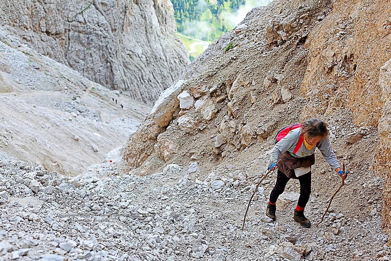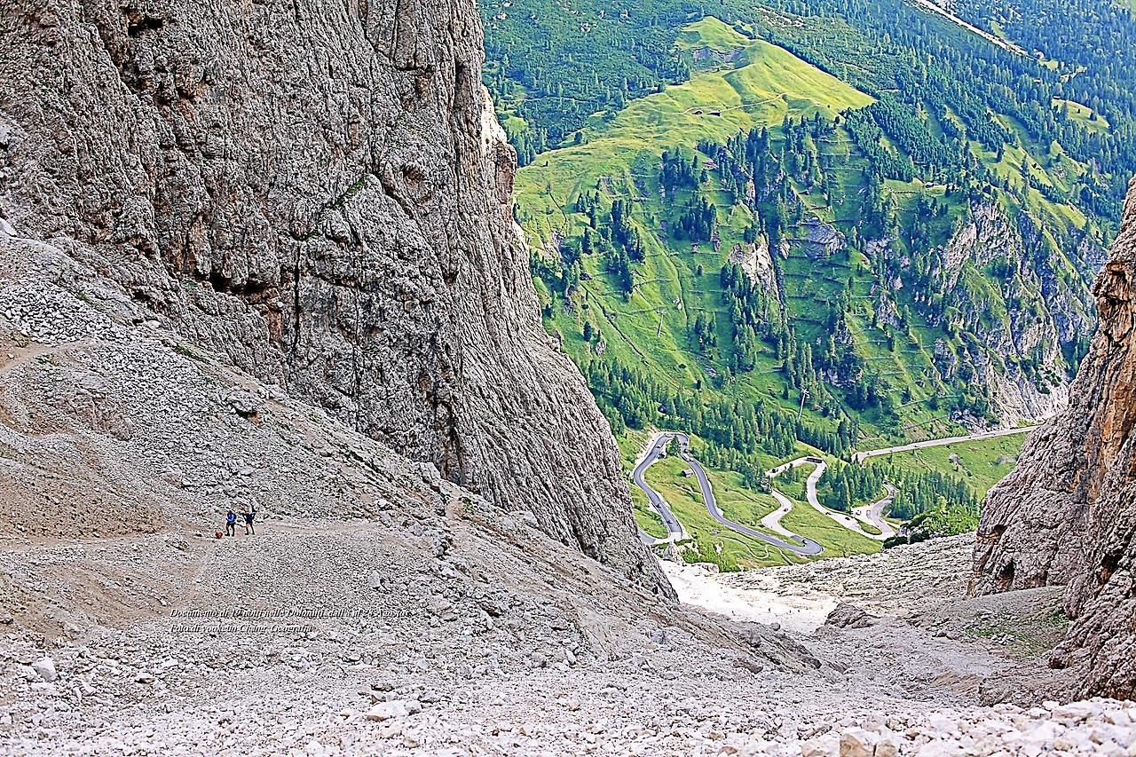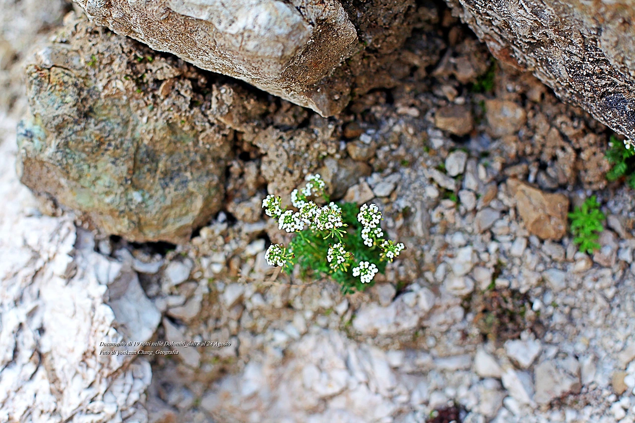 고도를 좀 더 높이자 돌로미티 노랑꽃양귀비는 점차 자취를 감추고 바위 덩어리가 태곳적 시간을 껴안은 채 우리를 맞이한다. 우리는 잠시 스쳐가는 바람이지만 만세토록 제자리를 지키고 있는 것. 조물주는 돌로미티를 조각하고 남은 돌이나 흙 한 점 조차 버리지 않고 작품 곁에 쌓아두었다. 그곳에 돌로미티 풀꽃들이 살아가고 었던 것이며 돌로미티에 생명을 불어넣고 있었던 것이다.