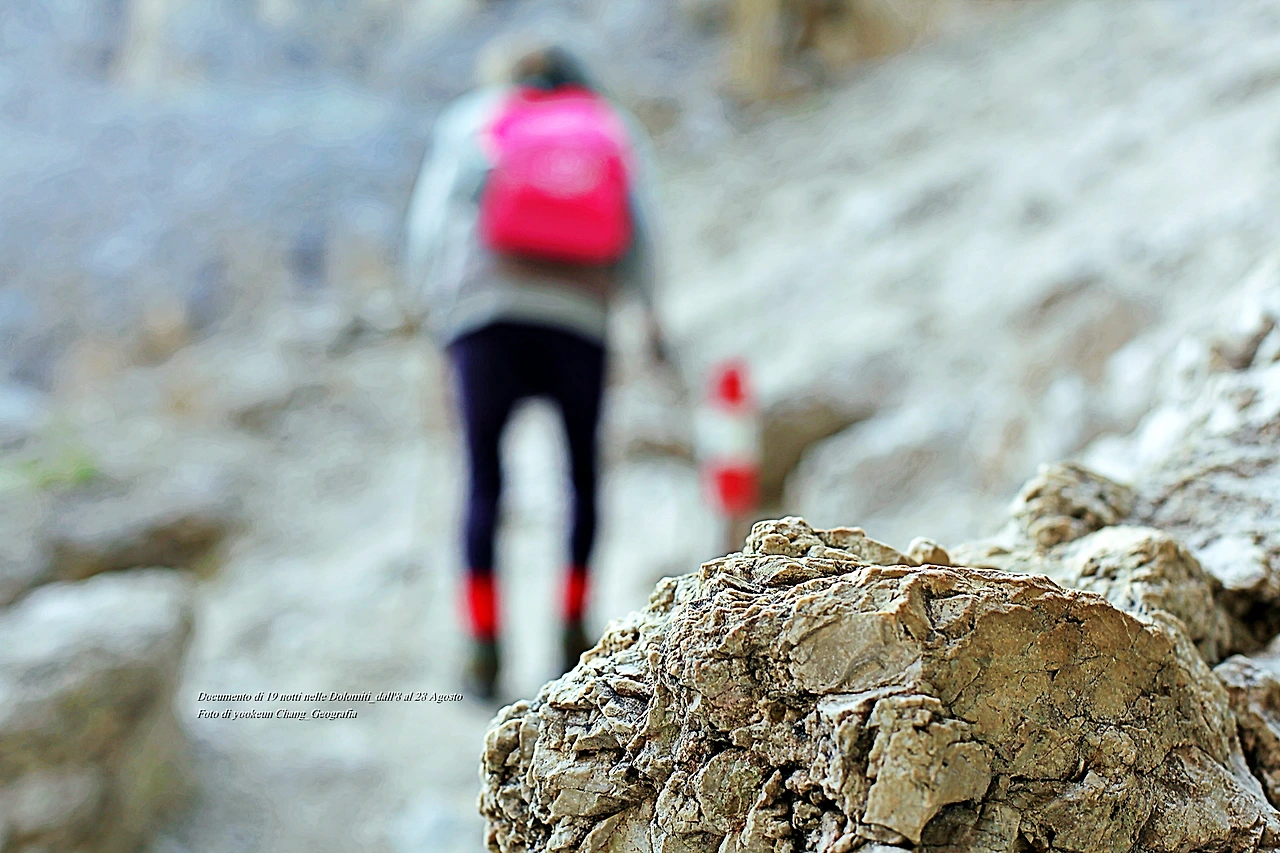 흙과 돌이 뒤섞인 등산로.. 길은 점점 더 형채를 잃고 있었다. 우리네 삶도 이러할까.. 사노라면 한 치 앞도 분간하지 못할 때가 적지 않았지.. 그때마다 지식보다 운칠기삼(運七技三)에 모든 것을 걸었던 게 아닌가. 하늘의 도우심.. 천지신명의 도우심이 필요할 때가 있었다. 초행길의 돌로미티 트래킹이 그랬으며 우리 앞에 놓인 장애물이 그러했다. 지내놓고 보면 별 것 아닌 것 같지만 어려운 상황을 맞이하면 "이제 끝장이구나"싶은 생각도 들지 않을까..