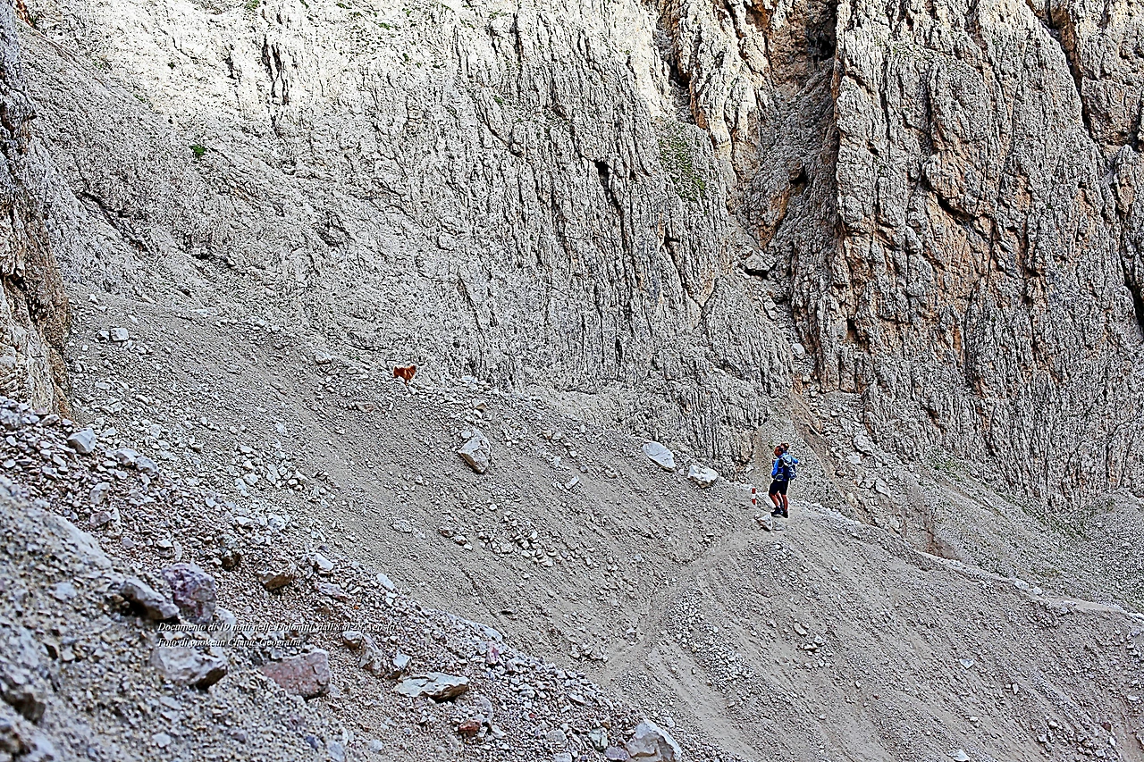 그러한 잠시 뒤를 돌아보니 개똥이는 주인의 손에 구출되어 우리가 온 길을 뒤따라 오고 있었다. 이런 상황을 "집 떠나면 개고생"이라고 했던가..ㅋ 우리 또한 개고생을 자처하고 있는 것이다. 그러나 이런 과정을 거치지 않는다면 죽기 전에 돌로미티의 비경을 어떻게 만날 수 있었을까..