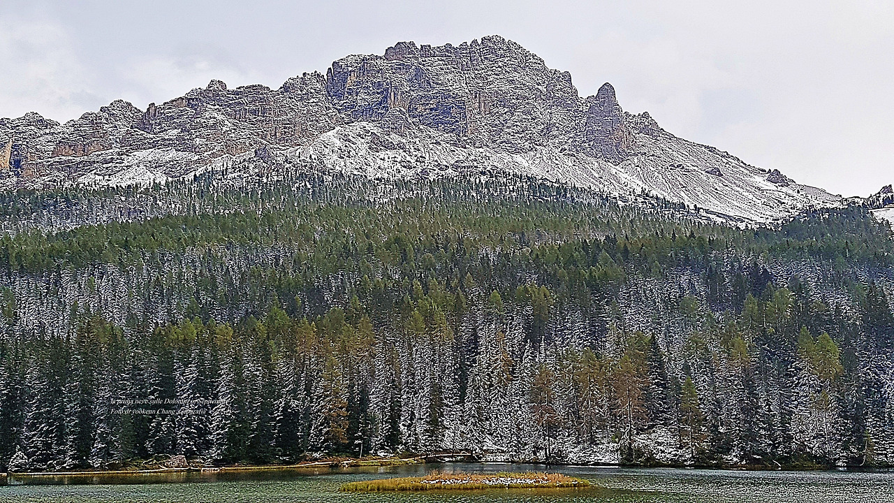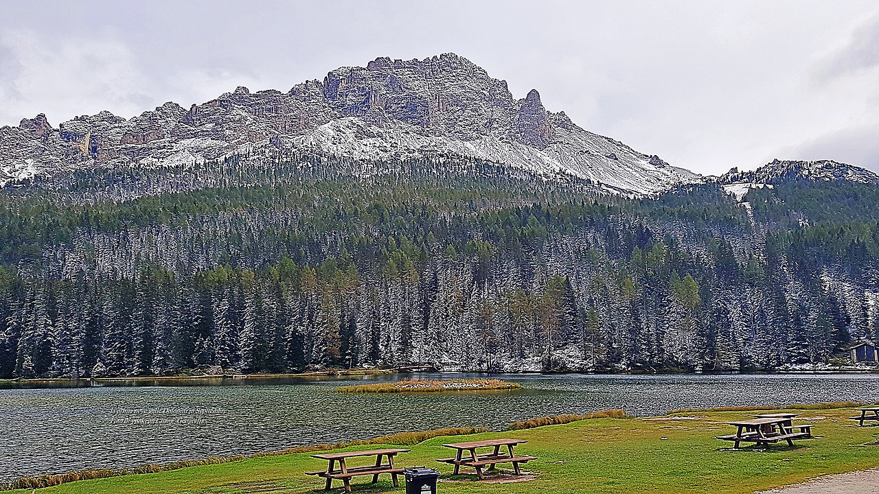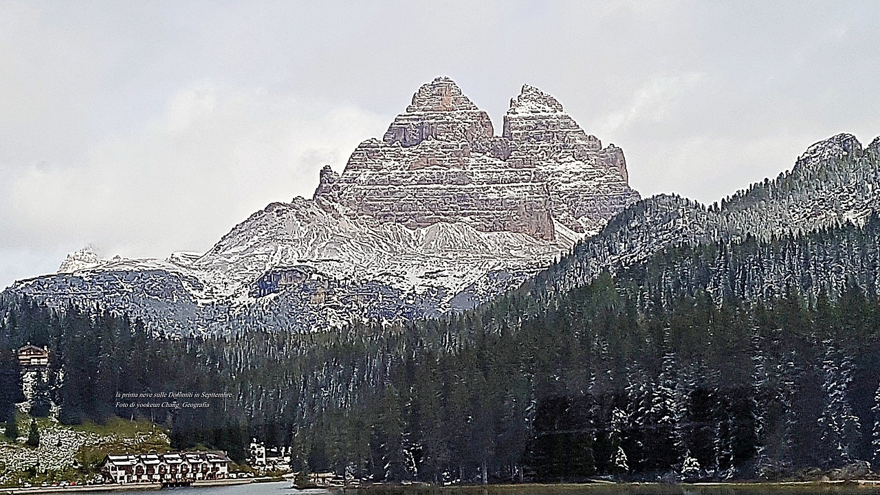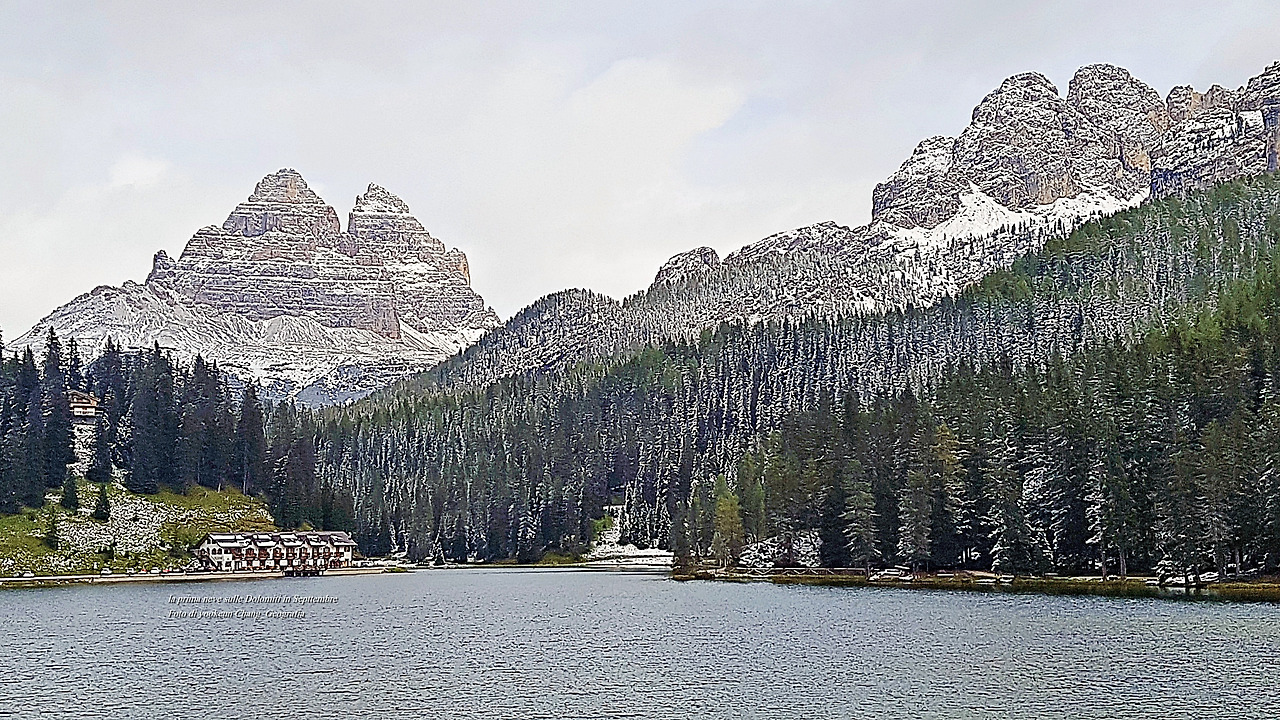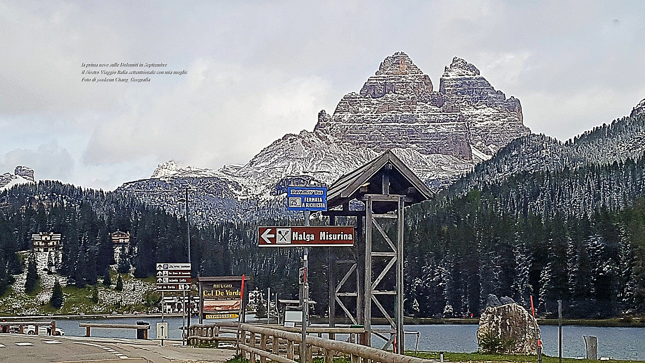 우리는 뜨레치매 디 라바레도가 코 앞에 빤히 보이는 라고 디 미수리나 호수(Il lago di Misurina) 앞에서 잠시 망중한을 달래며 눈 잎에 펼쳐진 첫눈의 장관에 깊이 빠져들고 있었다. 전혀 예상하지 못했던 일. 전혀 예상 밖의 일이 우리 앞에 나타난 것이다. 나는 이런 일들이 그저 된 게 아니라 하늘이 우리에게 준 선물이라 여기고 있다. 자연의 한 현상을 두고 특정인에게 부여되는 선물이라고 생각하면 착각도 유분수지 싶을 것.
