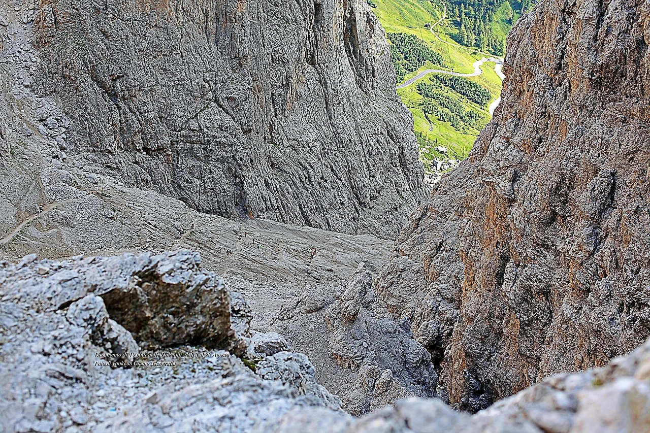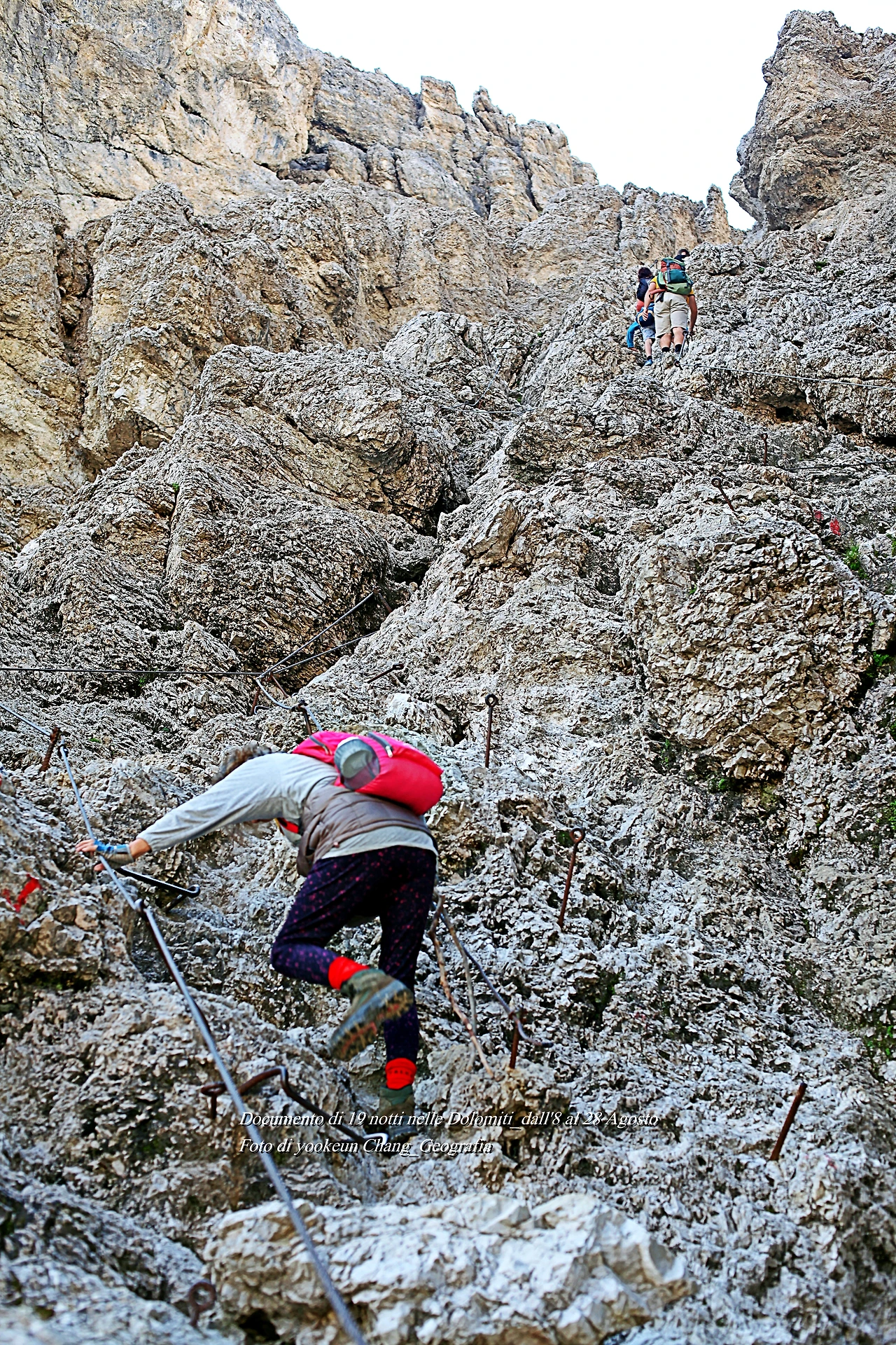그리고 하니에게 앞설 것을 말하며 나는 하니의 등 뒤에서 밀착하여 하니가 디디는 발을 손으로 받쳐주며 한 발자국씩 앞으로 내디뎠다. 이 코스의 가장 힘든 점은.. 만약 발을 헛디디거나 손을 쇠밧줄에서 미끄러져 놓치는 경우의 수가 발생하면 자칫 대형사고로 이어질 개연성이 다분했다. 정말 위험한 순간이자 힘든 결정을 내려야 하는 순간에 우리는 감행을 결정한 것이다. 돌로미티에서 하니와 함께한 동고동락은 이렇게 시작된 것이다.