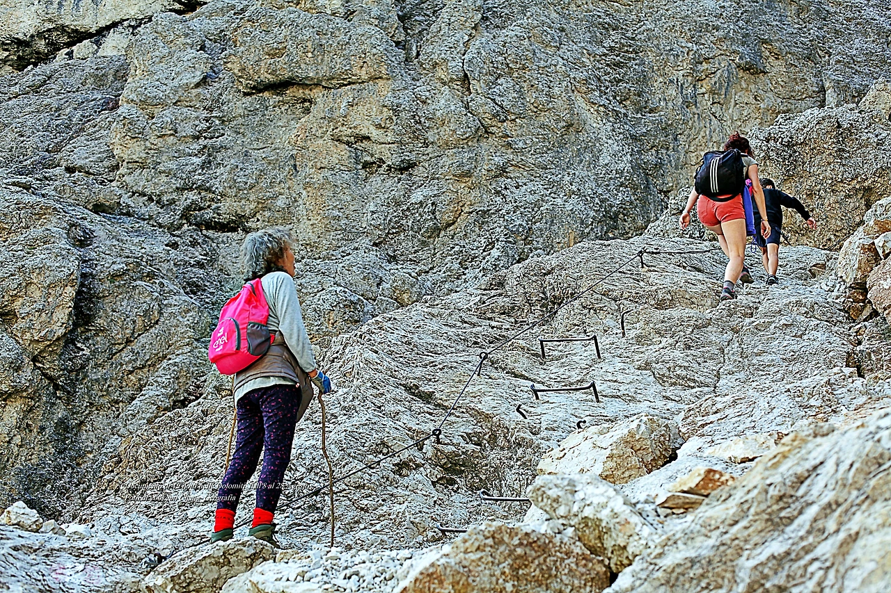 어느 날 아침, 돌로미티 여행에서 트래킹에 나섰다가 등산으로 변한 것까지는 용서(?)한다고 해도, 우리 앞에 암벽 타기나 다름없는 장애물이 나타난 것이다. 자료사진에서 보면 어린아이까지 엄마와 함께 오르는 모습이 보인다. 그러나 하니는 장애물 앞에서 겁을 먹기 시작하며 "돌아가야 할 거 같아!"라며 내게 돌아갈 것을 주문한 것이다. 하니의 사전에는 '포기'란 없을 것 같았지만, 처음으로 내 앞에서 두려움을 실토한 것이다.