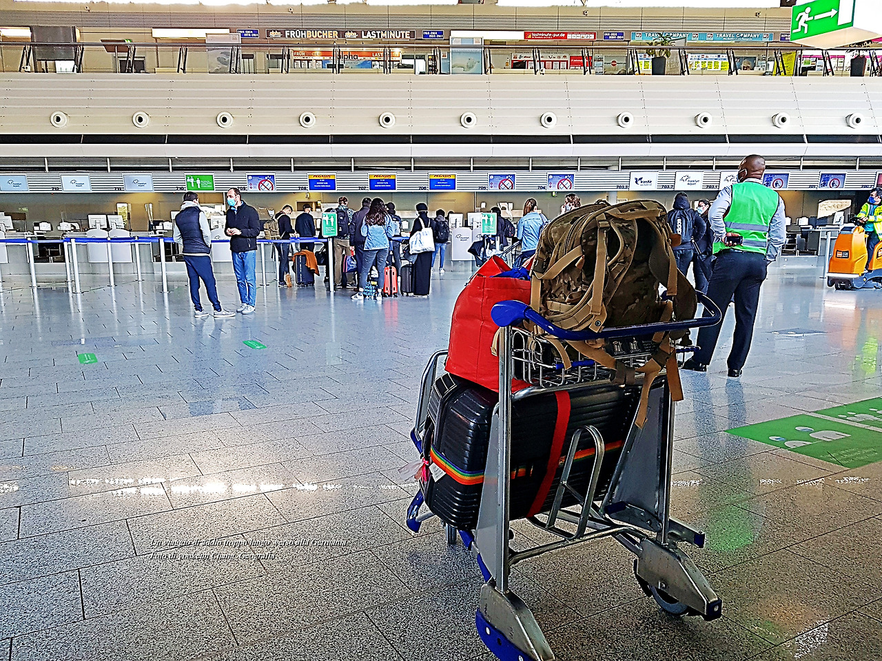 티켓팅을 하면서 곁에 있던 재독 한인을 만나 이야기를 나누던 중 딸내미 한 분이 "노약자 서비스를 해 두었기 때문에 함께 가셔도 좋을 것"이라고 말했다. 곁에 있던 항공사 여직원에게 즉각 부탁을 했더니 "동승해도 좋다"며 쾌히 승낙했다. 행운이었다. 우리는 코로나를 피해 이탈리아 남부 뿔리아 주 바를레타에서 대략 1,500킬로미터(편도)를 주행하고 이틀 만에 공항에 도착했는데.. 하니와 동승하는 한 분 역시 코로나를 피해 한국으로 떠난다고 했다.