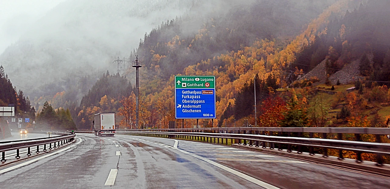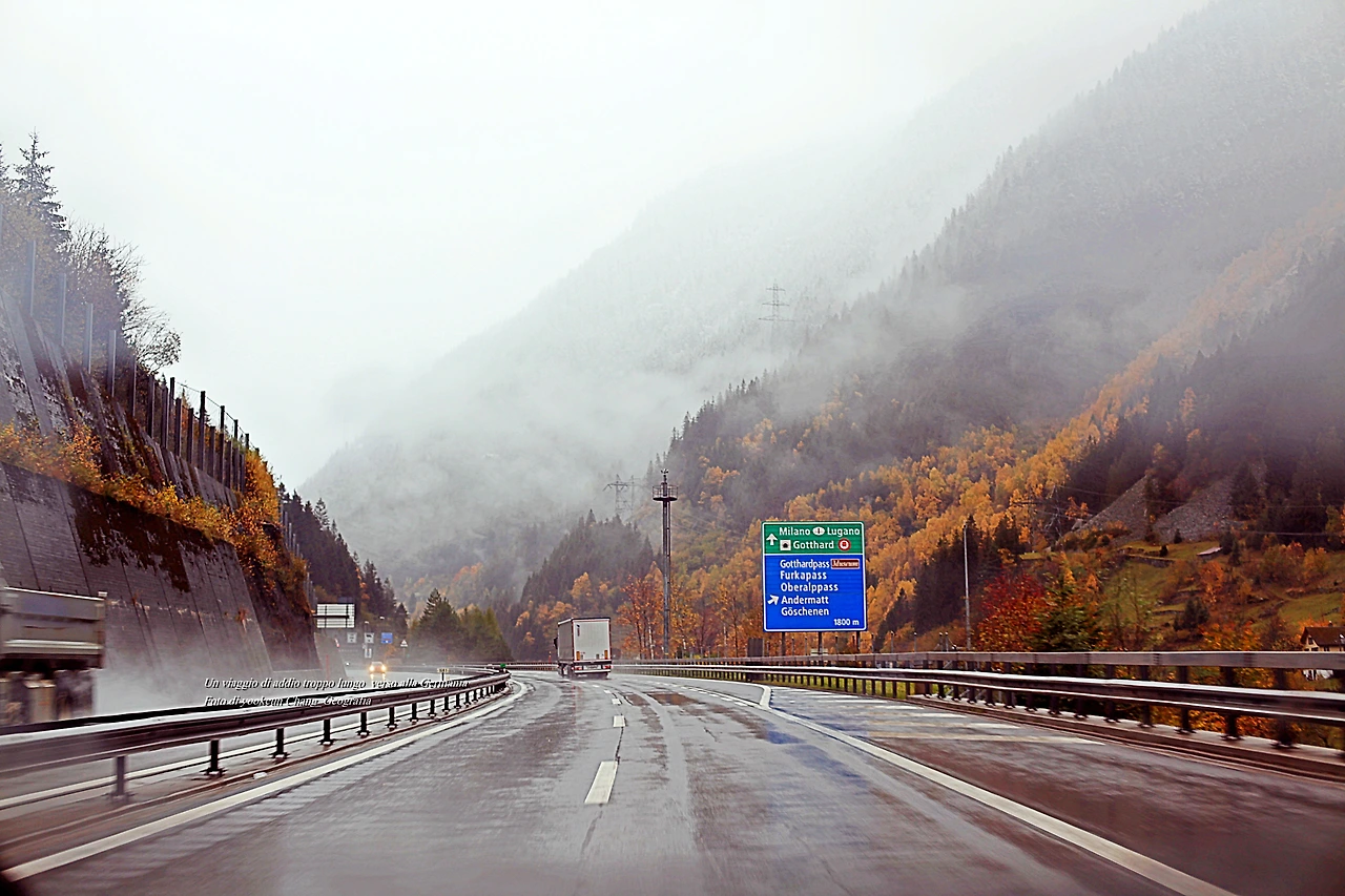 내가 고따르도 터널로 진입한 이유는 우연한 일이자 행운이 뒤따랐다. 이정표에 쓰인 램프를 보니 그 유명한 고따르도 고갯길(Passo del San Gottardo)이 나타난 것이다. 돌로미티를 두 번 다녀오는 동안 고갯길이 풍기는 묘한 맛도 느꼈지만, 한시라도 빨리 집으로 돌아가고 내 마음은 용틀임처럼 길게 이어지는 길이 싫었던 것이다. 나는 이정표에 적힌 밀라노만 보고 직진한 것이다. 그리고 잠시 후 놀라운 광경을 목격하게 된 것이다.