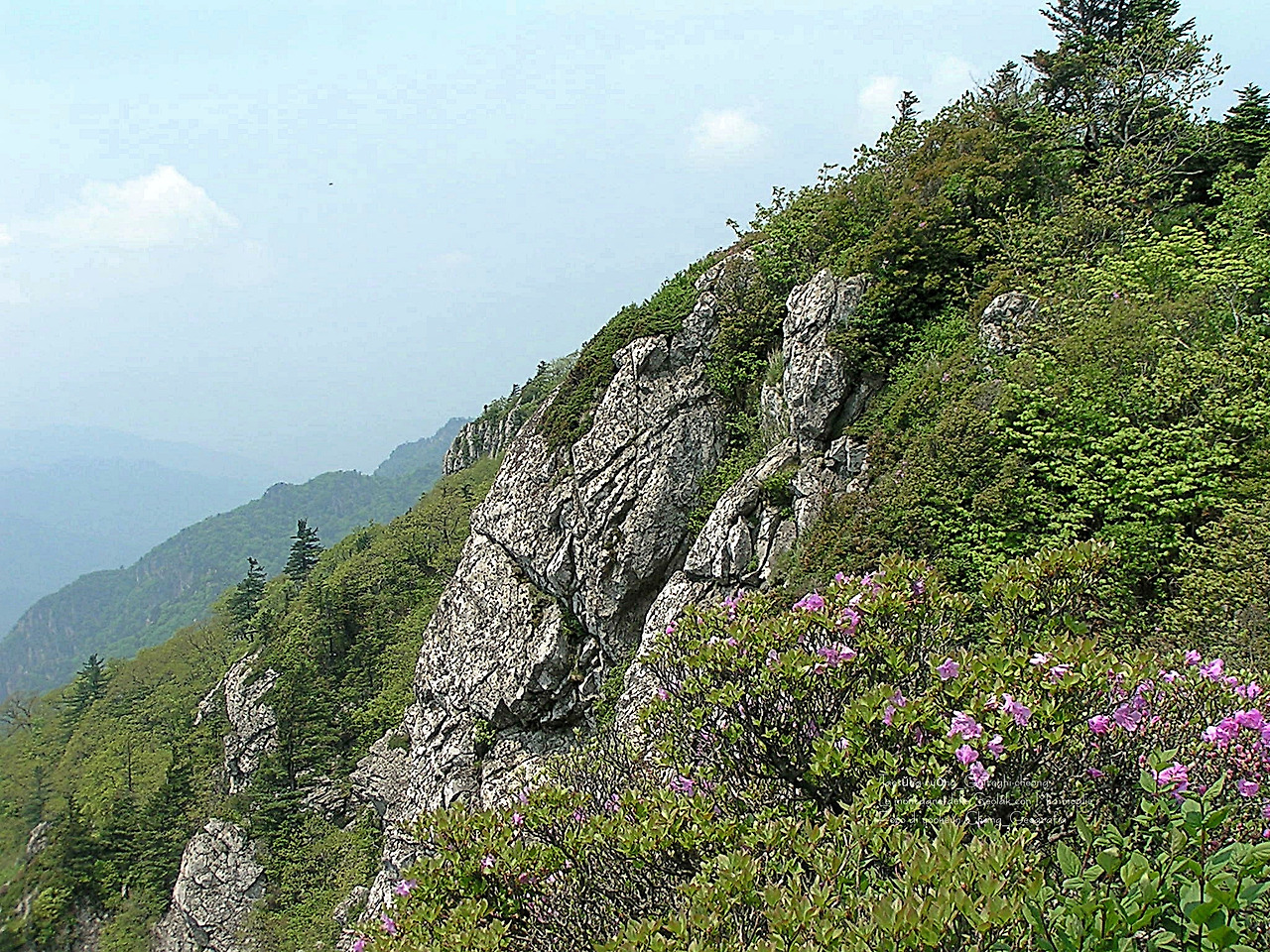 설악산 서북능선의 주릉에는 이제야 철쭉이 꽃잎을 내놓고 있었다.