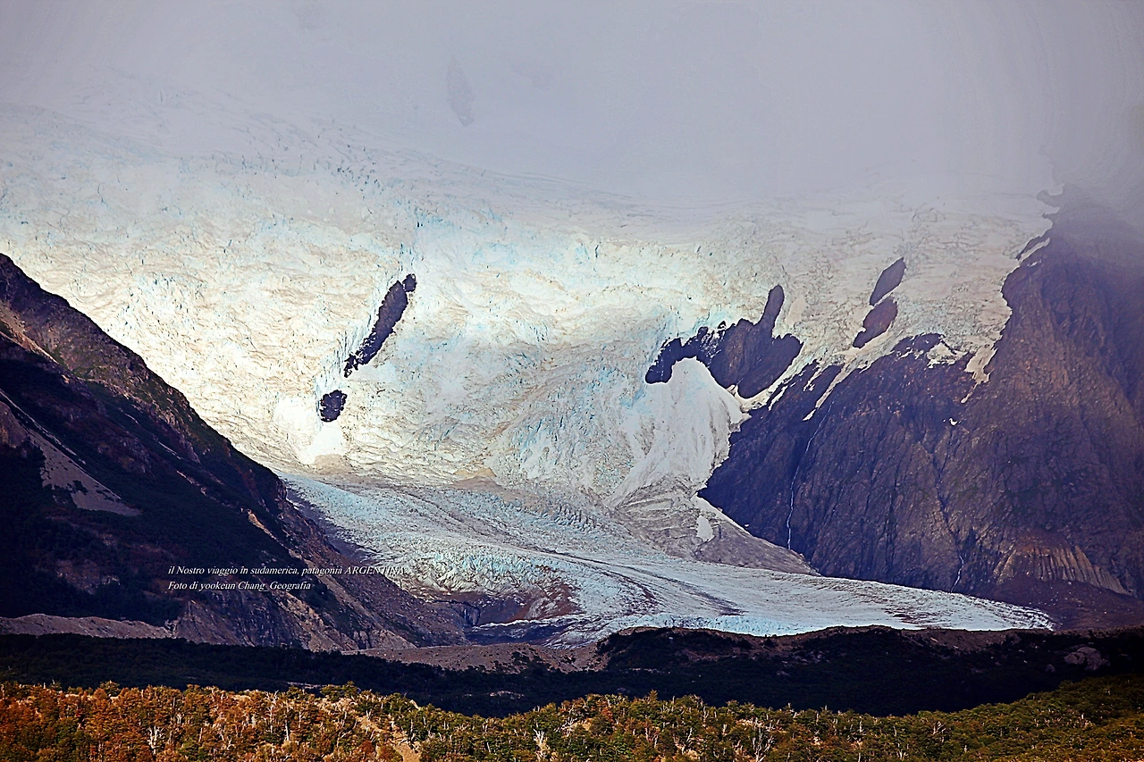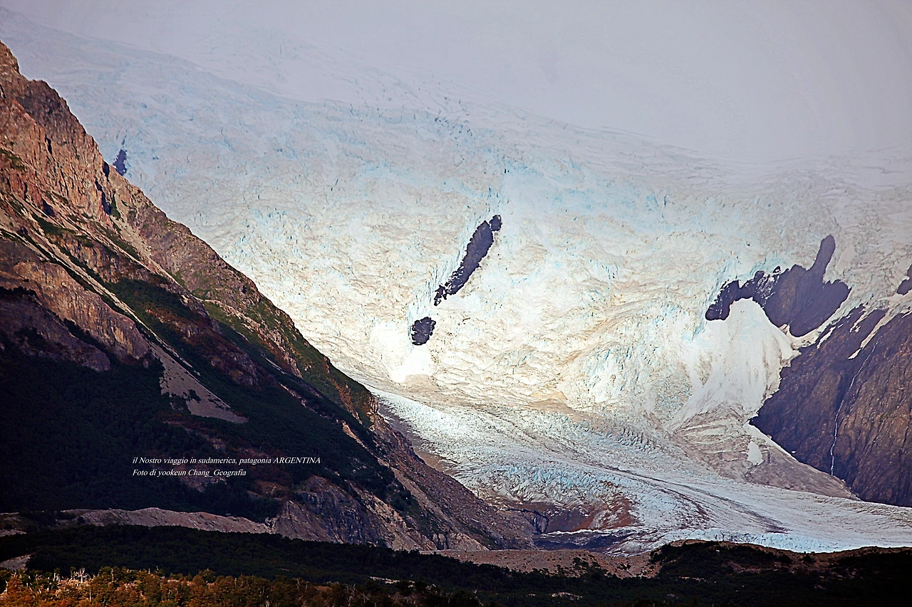이곳의 특징은 세계의 다른 지역에서 볼 수 있는 해발 2500미터 높이의 빙하와 많은 차이를 보이고 있다. 이곳의 지리적 특성 때문에 빙하는 해발 1500미터에서 시작해 그곳으로부터 해발 200미터까지 흘러가는 것이다. 포스트에서 만난 거대한 느낌표가 박힌 그곳은 사방이 거대한 산에 둘러싸여 있고 빙하가 피츠로이 강으로 흘러가는 한쪽에만 겨우 길을 터주고 있는 것이다. 우리는 그곳을 따라 전망대까지 도착했으며 기적처럼 연출되는 대자연의 살아있는 현장을 목격하기에 이른 것이다.