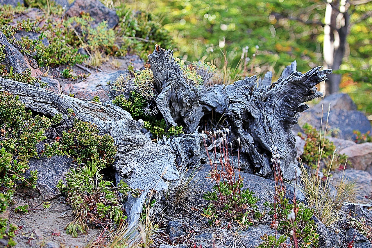 라구나 또레로 가는 길 옆에는 고사목들이 줄지어 있고 그 곁 풀숲에서는 깔라파테 열매가 까맣게 익어가고 있었다. 또 꽃잎을 떨군 풀꽃들은 먼 여행을 떠날 차비를 하고 있었다. 간간이 가시덤불 나무(Mulinum spinosum)가 보였으며 땅은 가물어 단비가 필요해 보였다.