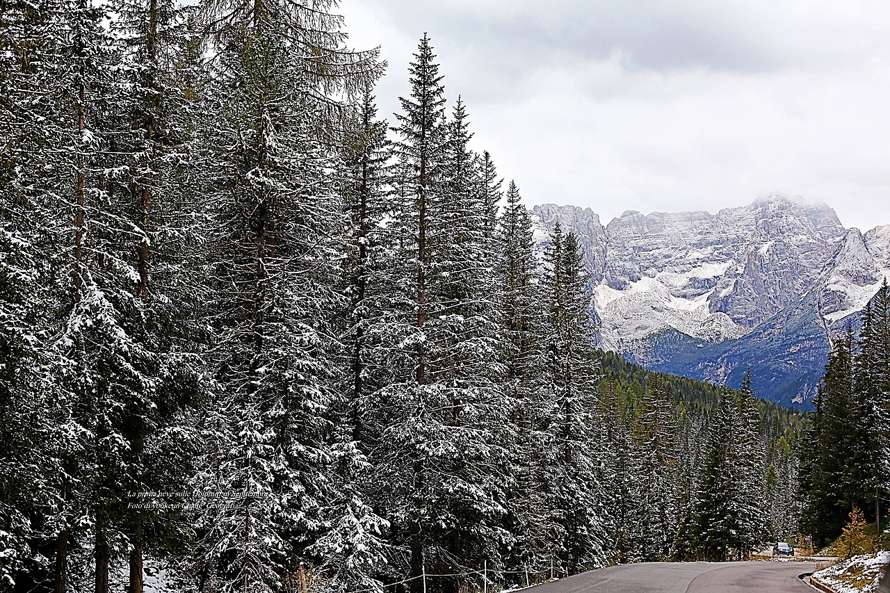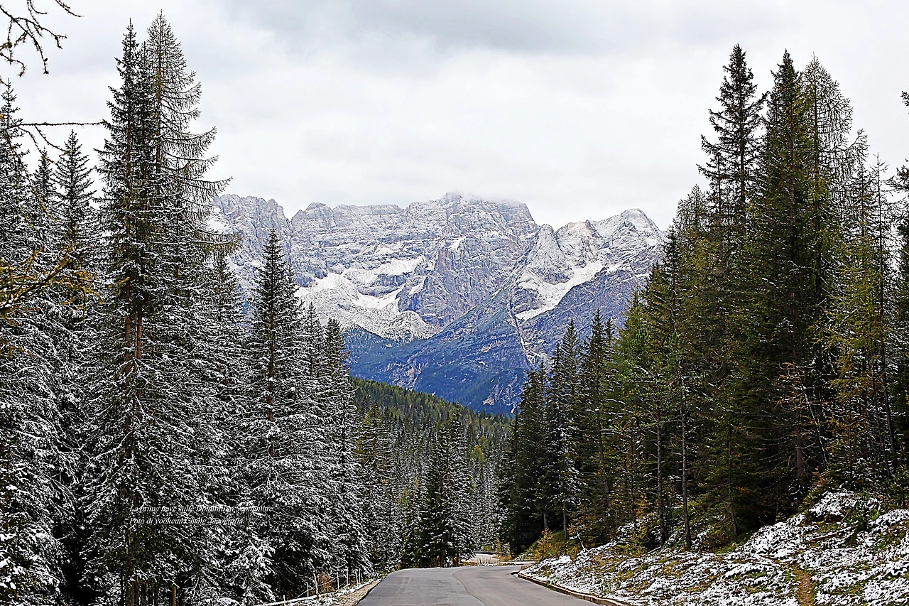 우리는 첫눈이 만든 기적 같은 풍경 속을 따라 돌로미티의 라고 다안또르노 호수(Lago d'Antorno)까지 진출한 다음 다시 돌로미티의 대표라 불리는 뜨레 치메 디 라바레도(Tre Cime di Lavaredo) 입구까지 드라이브한 후에 다시 오던 여정을 따라 꼬르띠나 담빼쬬(Cortina d'ampezzo)로 이동하고 있었다.