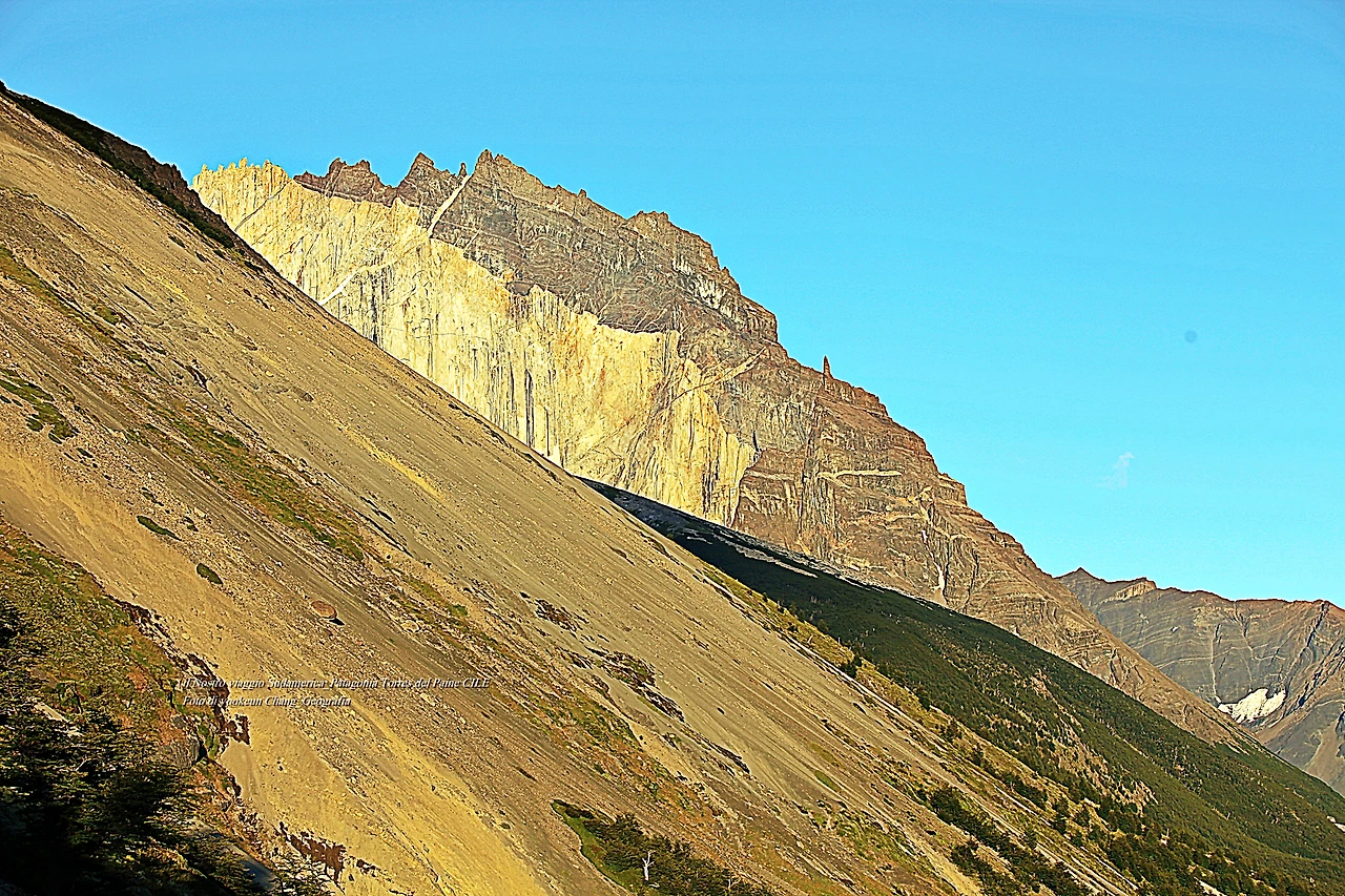 이른 아침 먼동이 트기도 전에 야영장을 나선 우리는 아침햇살이 황금빛으로 변한 능선 위에서 또레스 델 빠이네 평원을 바라봤다. 아침햇살이 평원을 톡톡 건드려 깨울 때쯤 장차 우리가 가야 할 길을 바라보고 있는 것이다. 우리는 기어코 이 산의 정상까지 다녀올 작정을 하고 있었다.