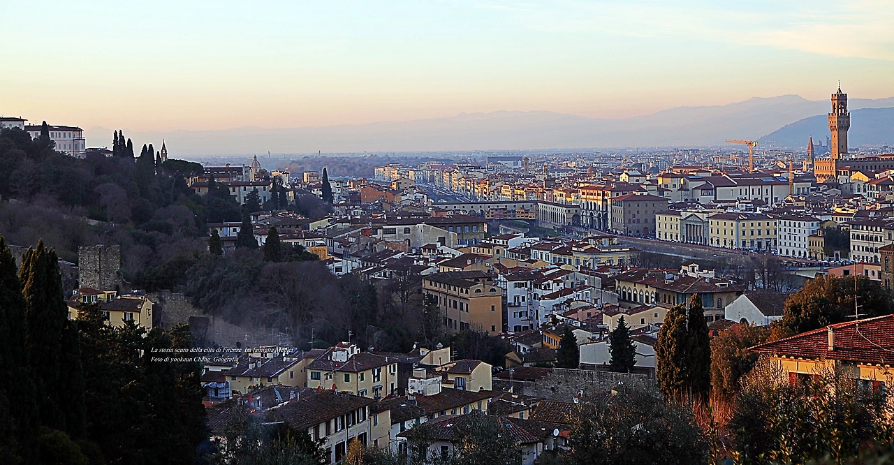 그곳에 가면 천년고도 피렌체가 한눈에 내려다 보이는 것은 물론 일몰이 장관이다. 이때, 오래된 도시 가운데로 흐르는 아르노 강(Fiumex Arno)은 황금빛으로 변하고, 수많은 이야기를 간직한 뽄떼 베끼오(il Ponte Vecchio) 다리는 다시 사람들을 유혹한다. 그곳은 2차 세계대전 당시 나치의 히틀러가 유일하게 폭격을 금한 장소이기도 하다.